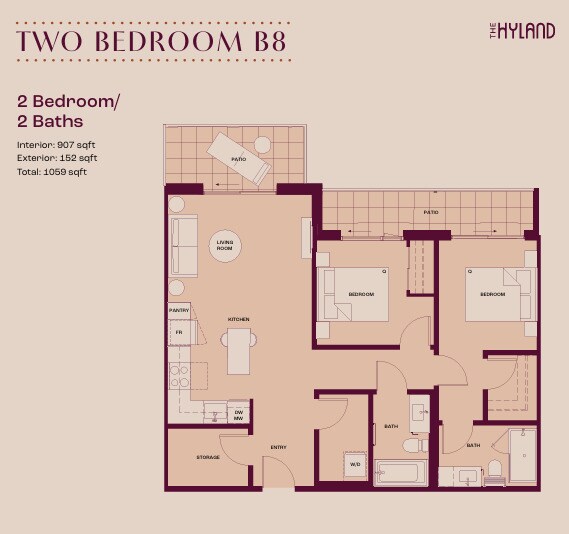 2 Beds, 2 Baths - Floorplan 8 ![]()