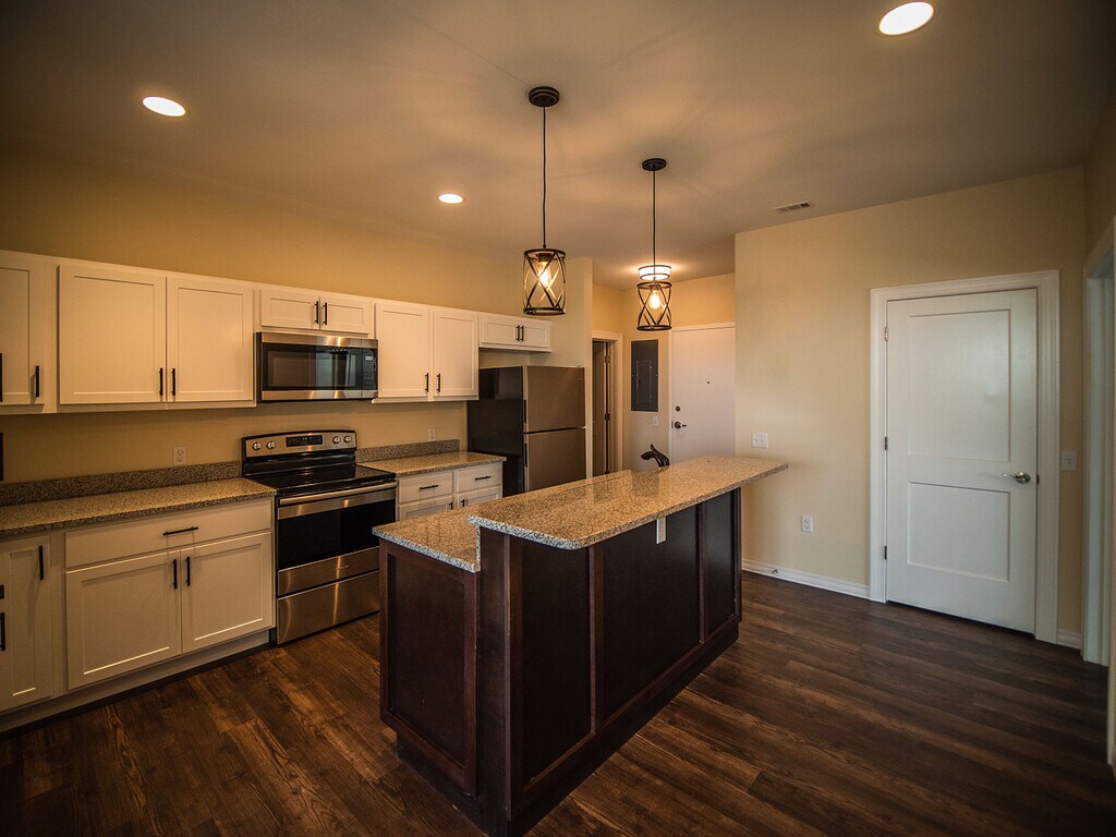 The Illiana represents one of the newest residential & commercial building spaces in Whiting, IN. The five-story building offers 3,600 square feet of first floor commercial space and 32 two-bedroom/two-bath residential apartments. The Illiana is in a great location and offers proximity to Calumet College of St. Joseph, downtown Whiting shopping and restaurants, and Lake Michigan. Residents of the apartments will enjoy design features including granite countertops, 9-foot ceilings, kitchen islands, private balconies, and master bedrooms with en-suite baths. Visit our Contact page to reach out to us for more information on The Illiana.