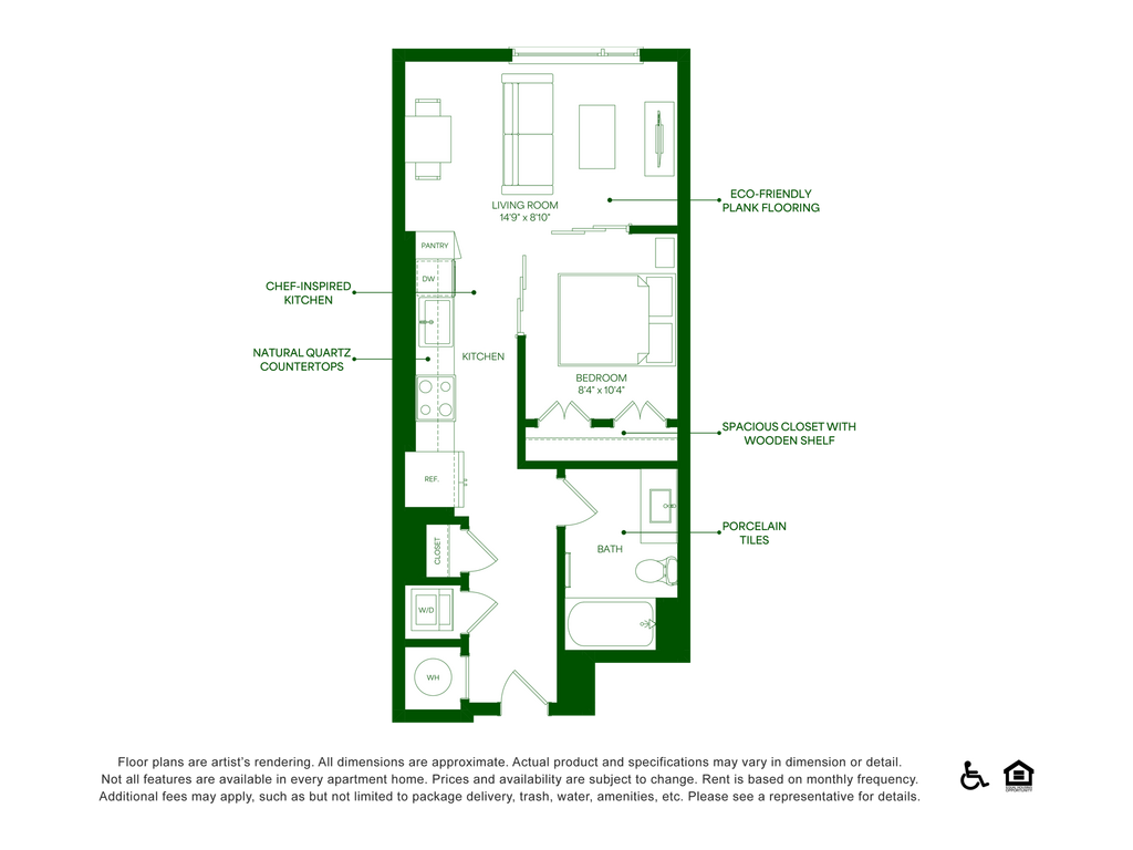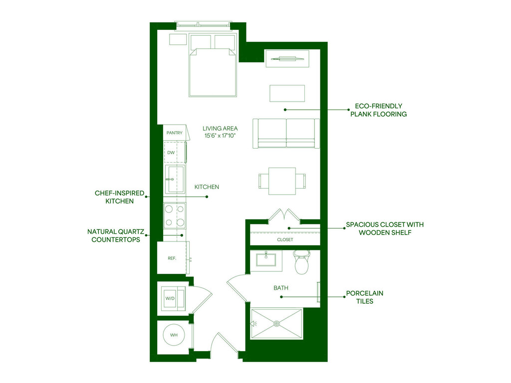 Apartment Model: S1$1,905Studio, 1 Bath, 475 sq ftAvailable NowFloor plans are artist's rendering. All dimensions are approximate. Actual product and specifications may vary in dimension or detail. Not all features are available in every rental home. Prices and availability are subject to change. Base rent is based on monthly frequency. Additional fees may apply, such as but not limited to package delivery, trash, water, amenities, etc. Deposits vary. Please see a representative for details.
