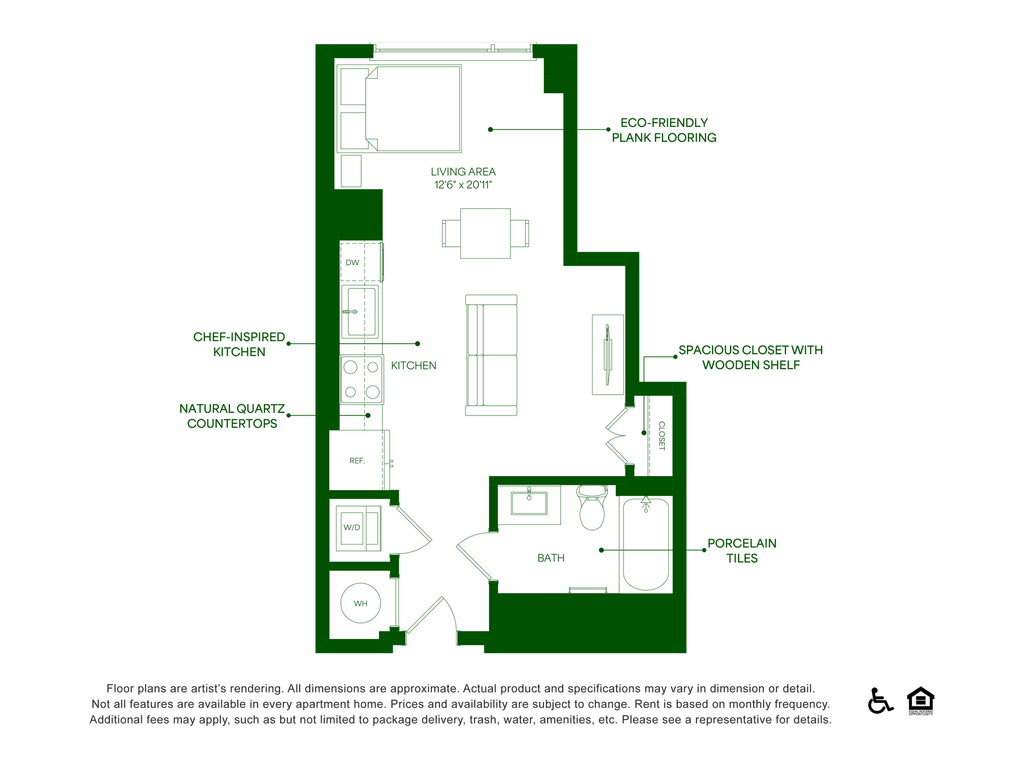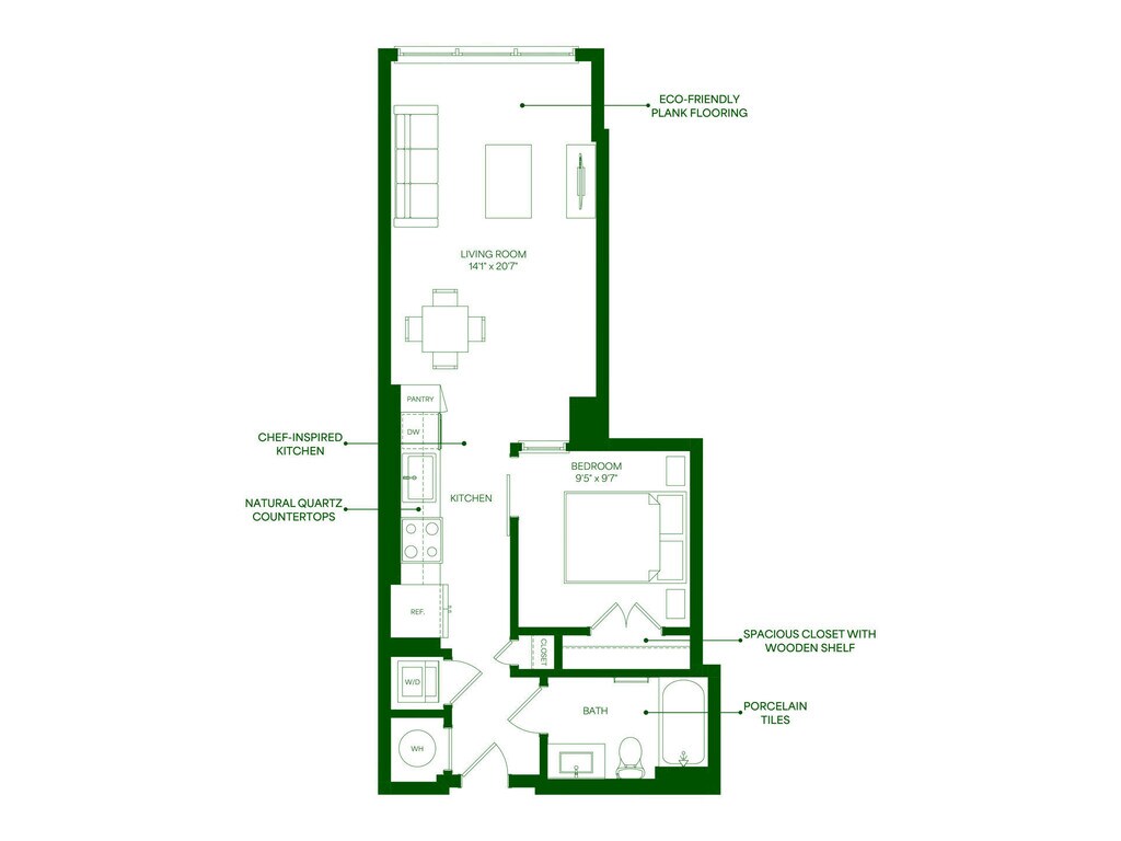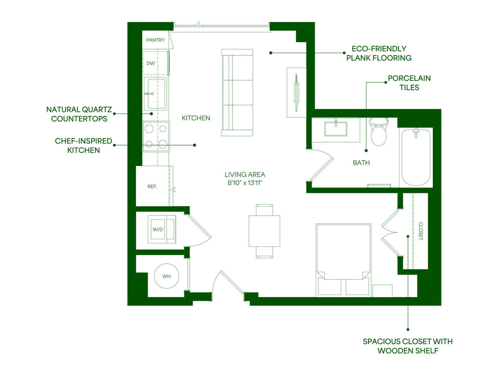 Studio, 1 Bath, 475 sq ftAvailability Details