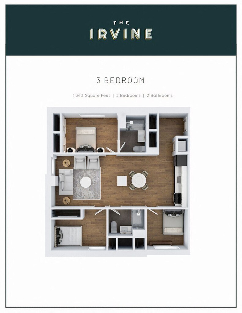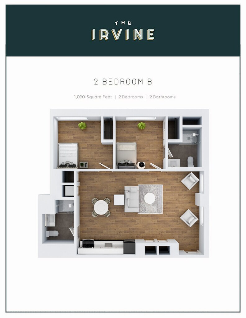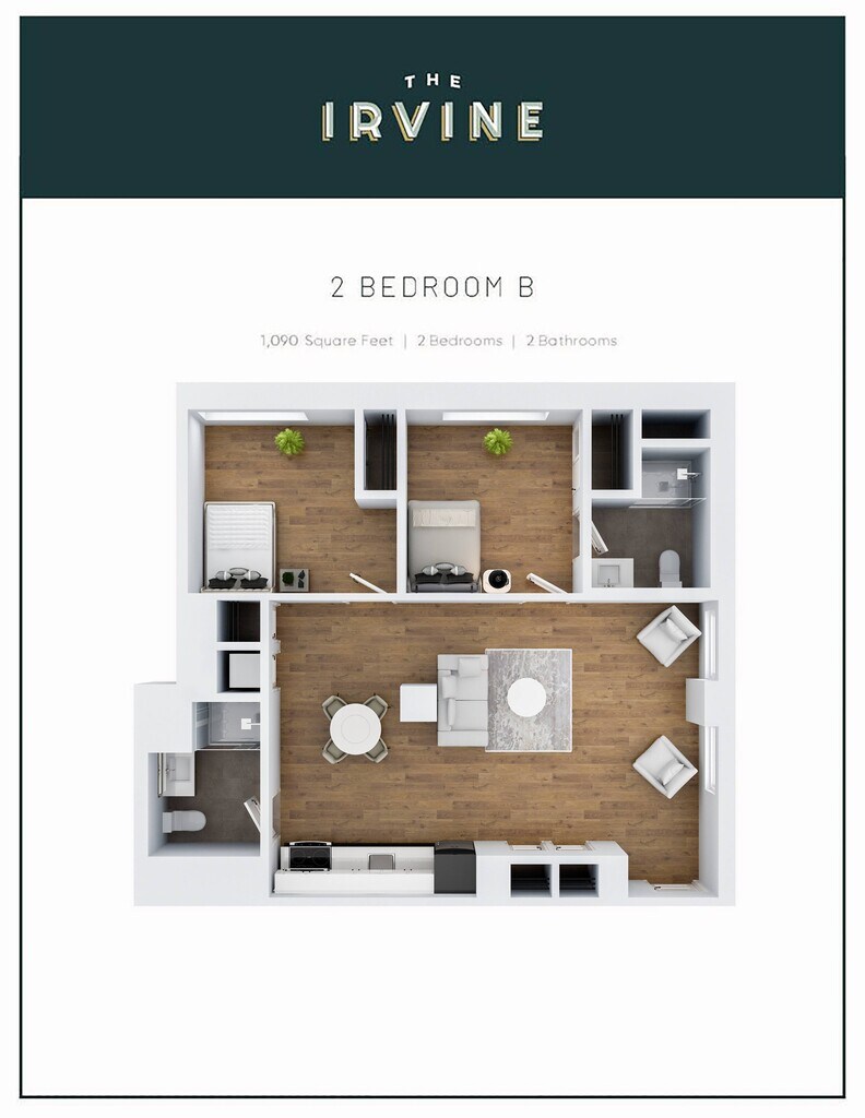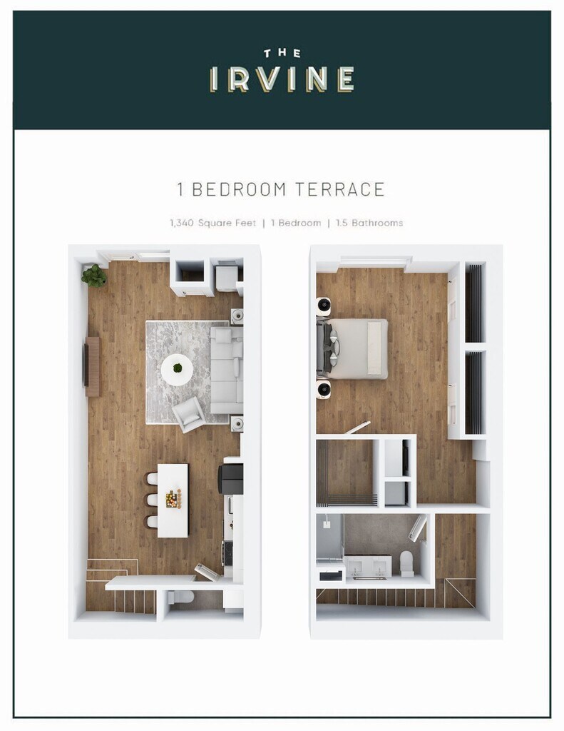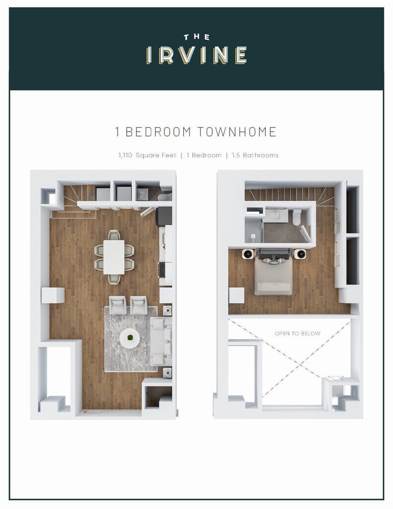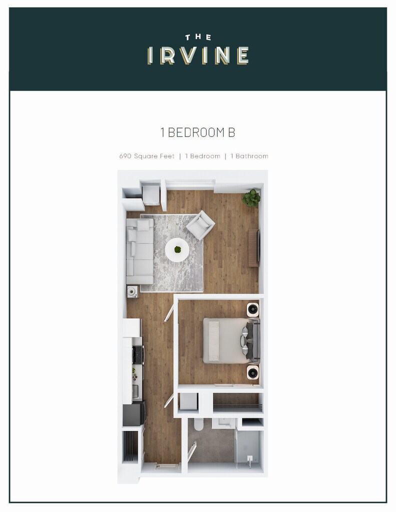 The Irvine offers Studio to 3 Bedroom apartments starting from $1,199 and having 430–1,340 sq ft. Here is the current pricing and availability: