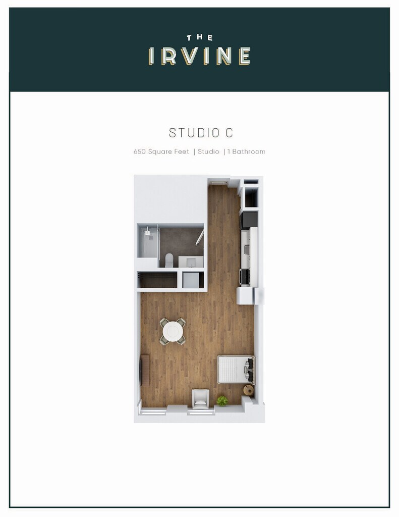 Studio D - Floorplan 2 Apartment Unit: 516Apartment Model: Studio D$1,499Studio, 1 Bath, 650 sq ftAvailable NowStudio C