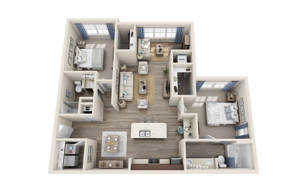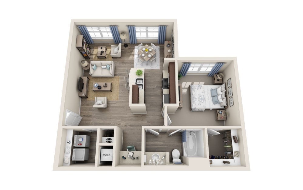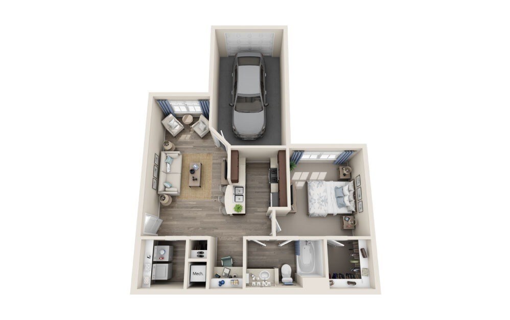 1 Bed, 1 Bath, 825 sq ftAvailable NowLargest 1 BedroomThis is the largest 1 Bedroom at this PropertyModel Gallery
