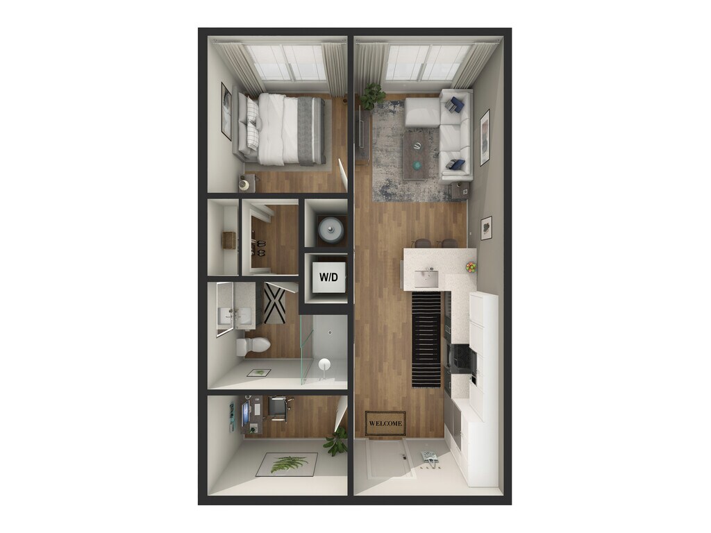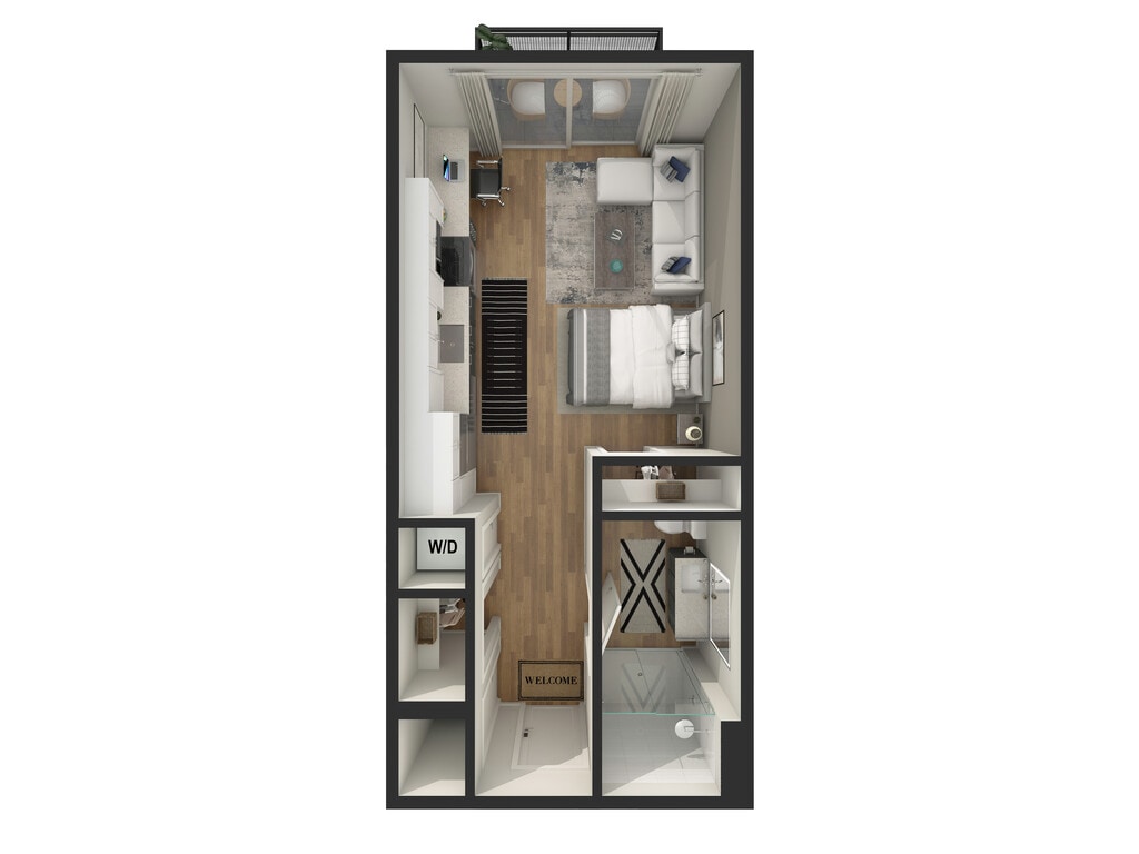 Apartment Model: Studio - S2 - BFrom $2,704Studio, 1 Bath, 600 sq ftAvailable NowFloor plans are artist's rendering. All dimensions are approximate. Actual product and specifications may vary in dimension or detail. Not all features are available in every rental home. Please see a representative for details.