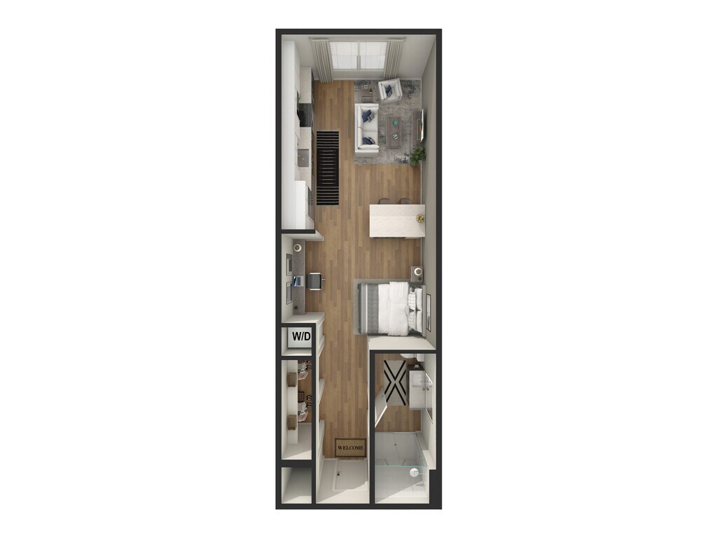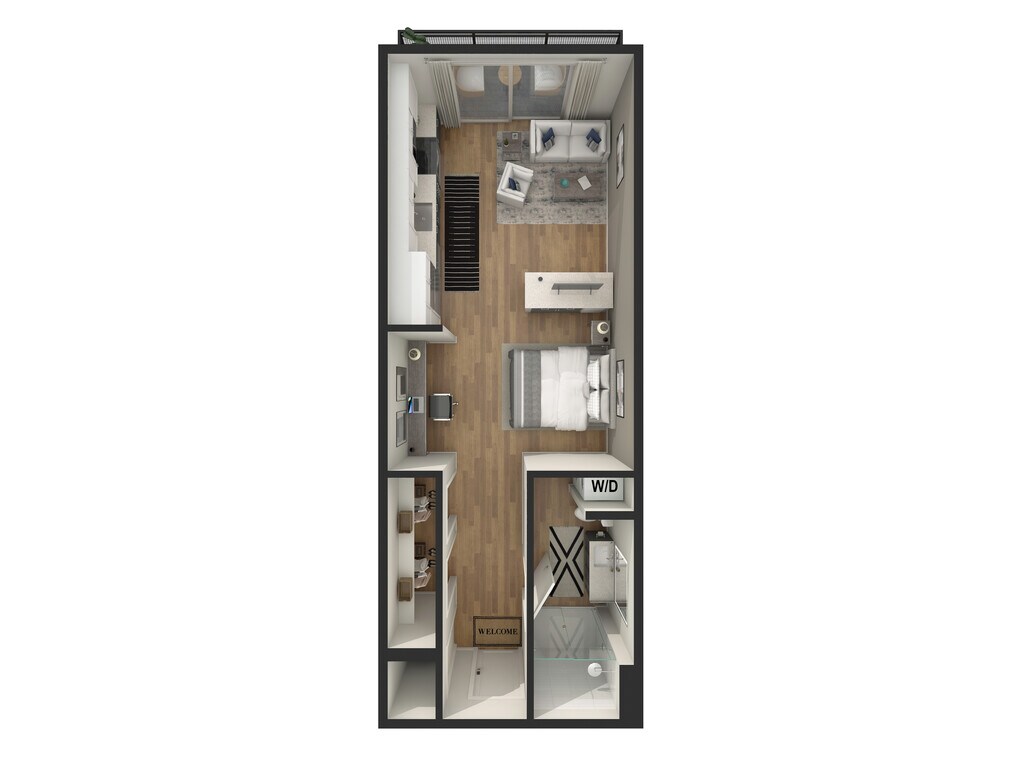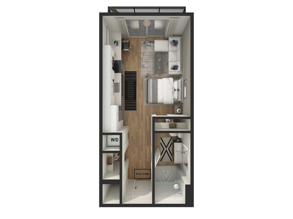 Apartment Model: Studio - S4From $2,354Studio, 1 Bath, 673 sq ftAvailable NowFloor plans are artist's rendering. All dimensions are approximate. Actual product and specifications may vary in dimension or detail. Not all features are available in every rental home. Please see a representative for details.