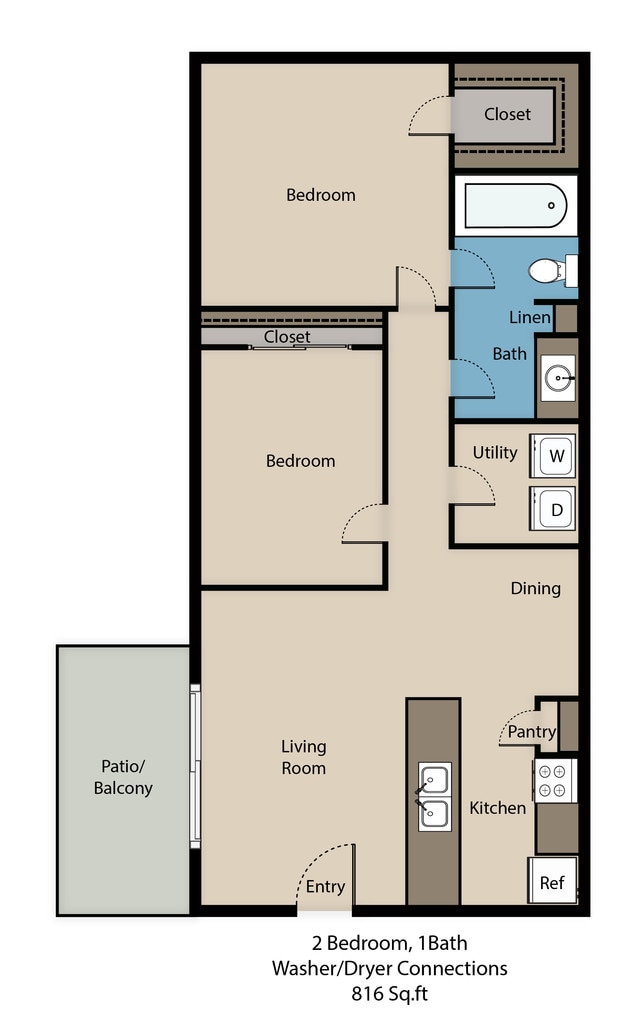 2 Beds, 1 Bath, 816 sq ftAvailable NowModel Gallery