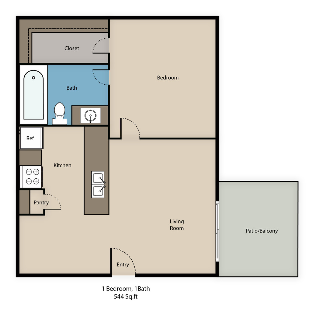 1 Bed, 1 Bath, 544 sq ftAvailable NowModel Gallery