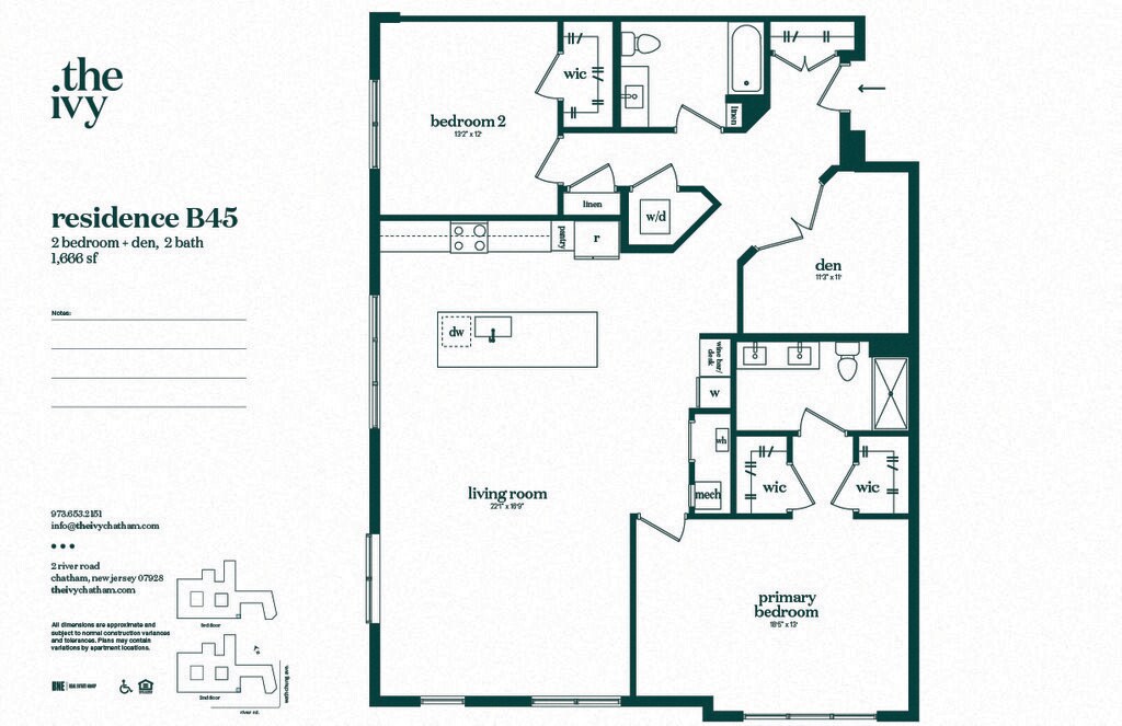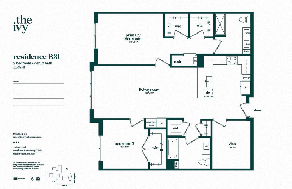 Refined yet welcoming, The Ivy Apartments introduces resort-style living to the quaint and historic town of Chatham, NJ. Our apartments offer over 34,000 square feet of exciting amenity spaces that blur the line between indoor and outdoor living. And with tree-lined streets, local boutiques, vibrant dining spots, and effortless connectivity to New York, our community truly has it all.Our one, two, and two-bedroom plus den homes are as spacious as they are stylish. Soaring nine to eleven-foot ceilings, luxury plank floors, and quartz countertops create a sophisticated ambiance to return to. Shaker vanities, linen storage, and custom wine storage are part of all our apartments in Chatham, NJ, with a select few also boasting wine bars, dens, and elegant kitchen islands.