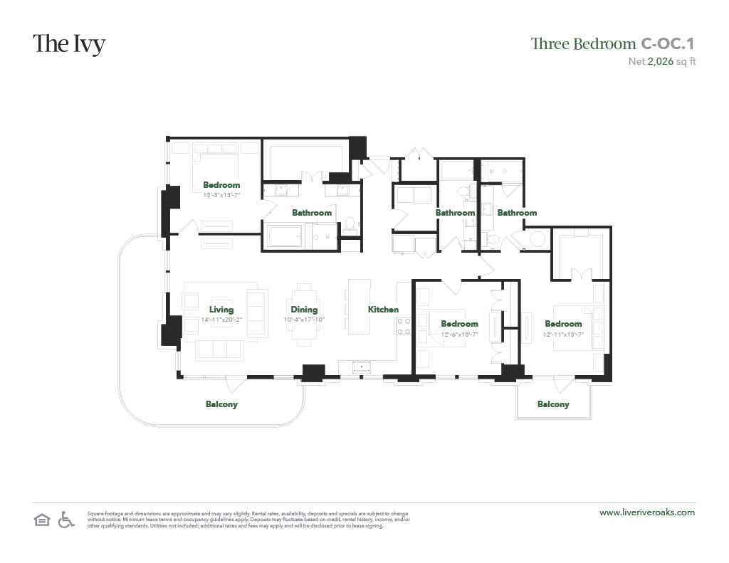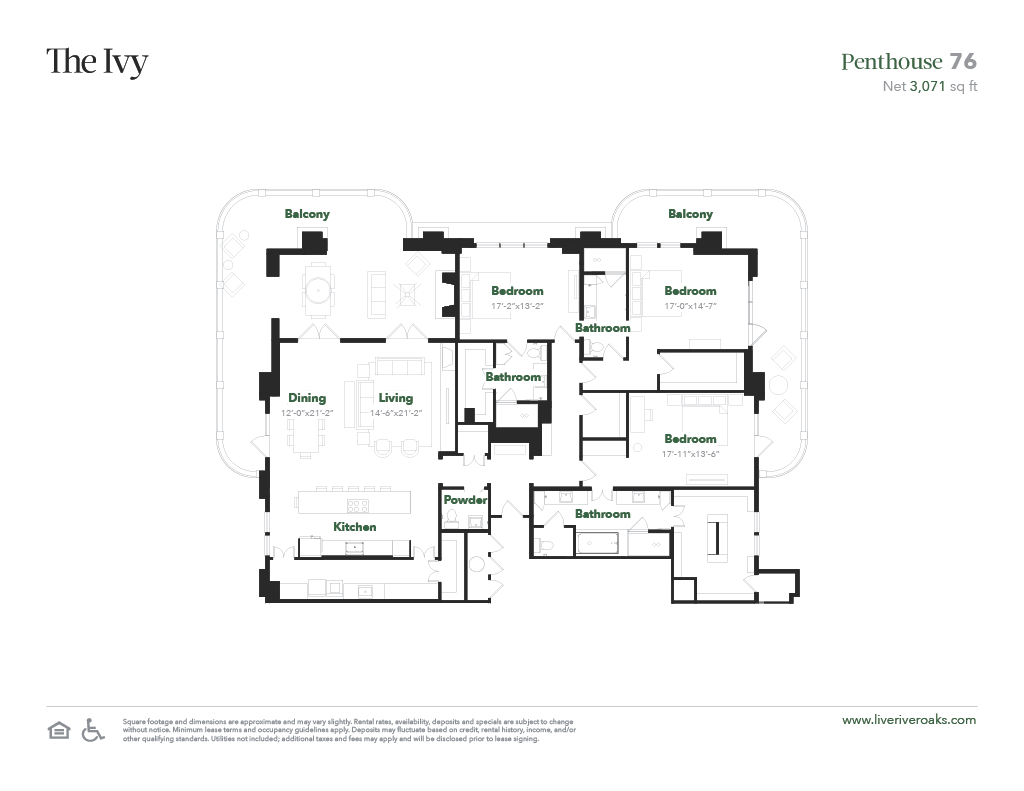 The Ivy offers Studio to 3 Bedroom apartments starting from $1,838 and having 550–3,070 sq ft. Here is the current pricing and availability: