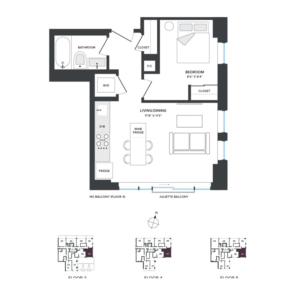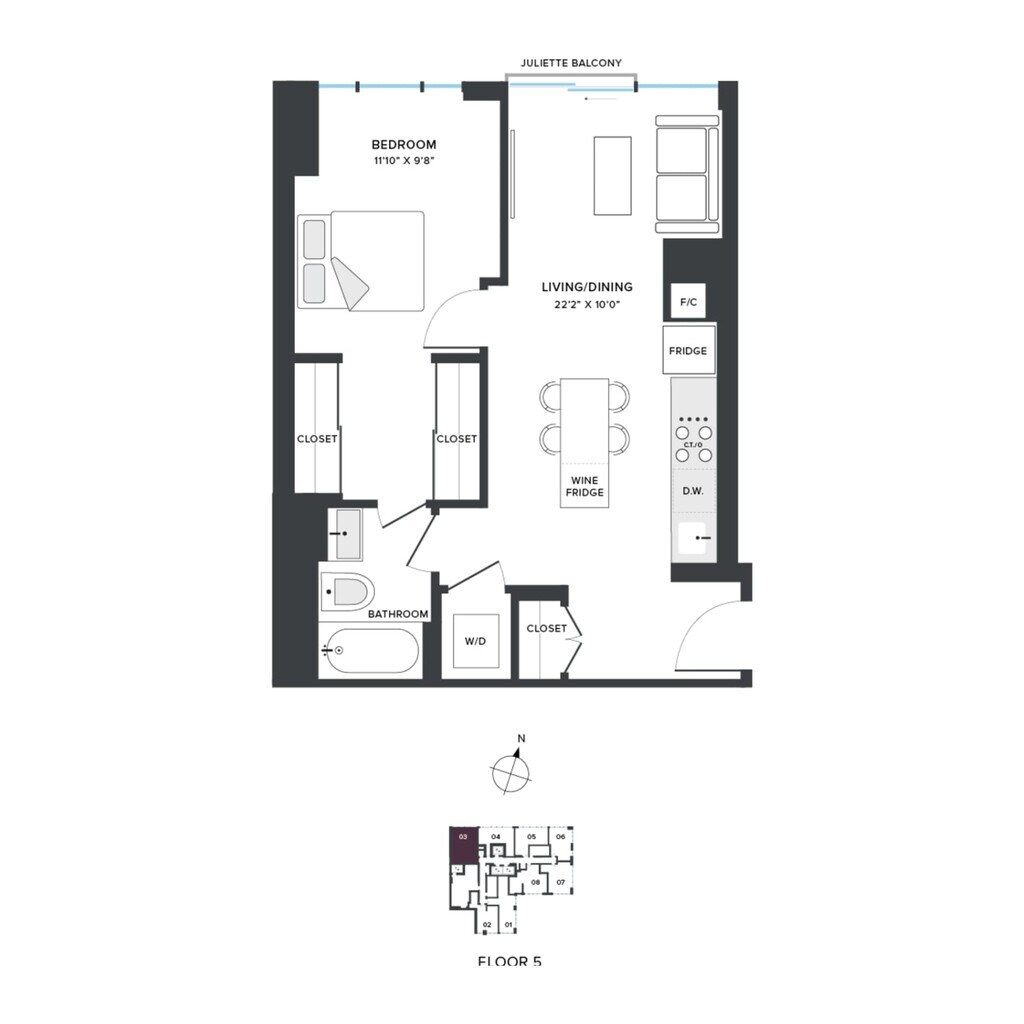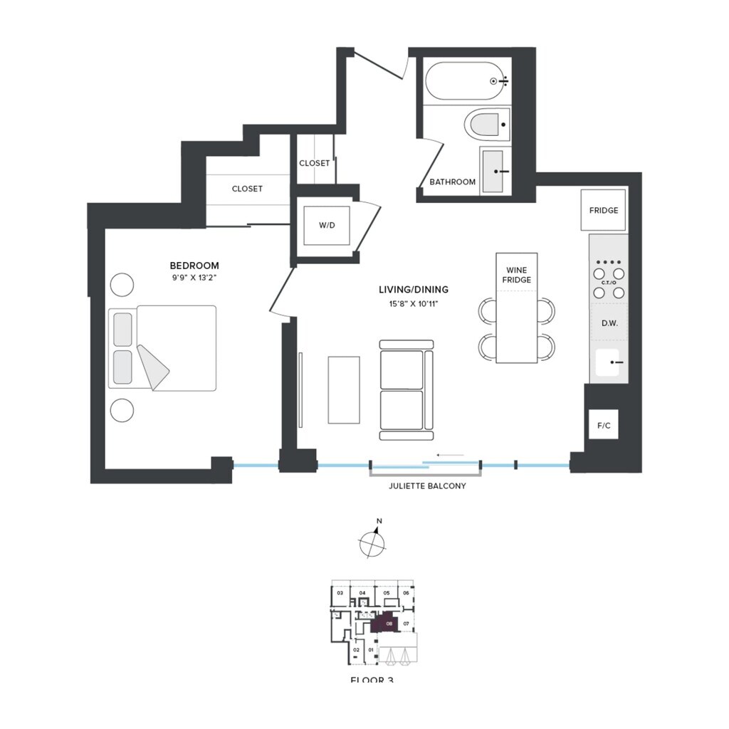 A04 - Floorplan 1 Apartment Unit: 307Apartment Model: A04From $2,5971 Bedroom, 1 Bath, 511 sq ftAvailable NowFloorplan A06
