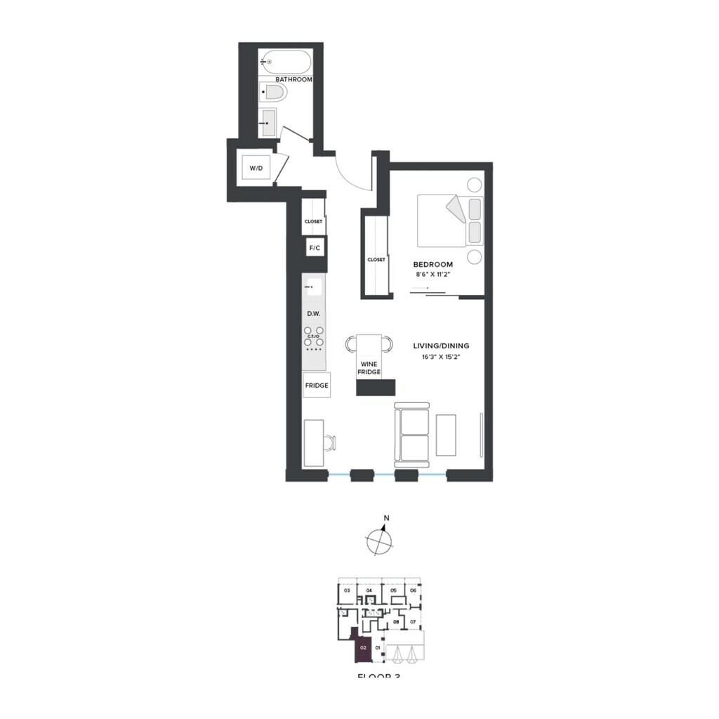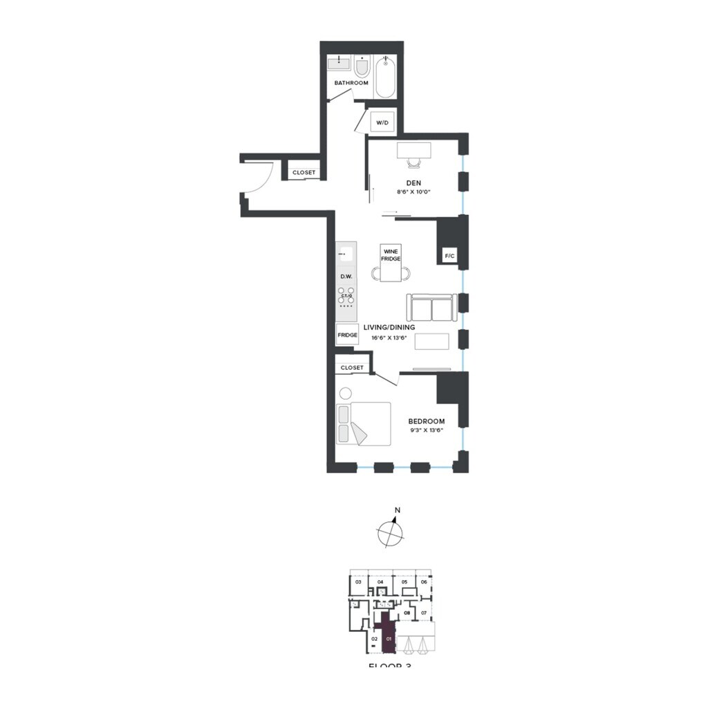 AD1 - Floorplan 1 Apartment Unit: 301Apartment Model: AD1From $3,1771 Bedroom, 1 Bath, 695 sq ftAvailable January 7, 2026Floorplan A01
