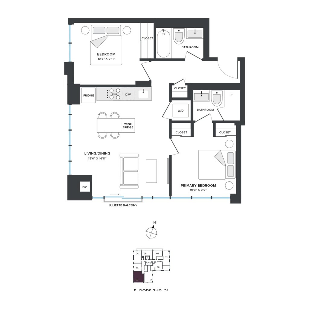 1 Bed, 1 Bath, 695 sq ftAvailable January 7, 2026Largest 1 BedroomThis is the largest 1 Bedroom at this PropertyModel Gallery