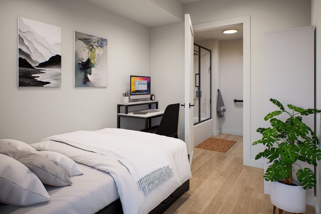 Welcome to The Ivy at 325 College Ave, a prime living location for Cornell Students. We have 6 of these units on levels 2-8. Designed with students in mind, this luxurious apartment community offers a wide range of amenities to elevate your college experience. Whether you are powering through a long study session, finishing a workout, or need a place to relax, it is designed to help you recharge. Tackle long study sessions by yourself or with a group of friends in our private study rooms, and if you feel yourself crashing on a late-night study session, then grab a cup from our 24-hour coffee bar. Once the work is done, enjoy breathtaking views from our rooftop terrace or unwind in the wellness spa and take a breather in the sauna for a total reset. Every apartment is fully furnished and features stainless steel appliances, an in-unit washer and dryer, and floor-to-ceiling windows that flood your space with natural light. Grab a bite to eat at the KOKO Korean restaurant after you’ve had a chance to reset and catch up with some friends in the game room. The resident lounge is a perfect spot for socializing, and our mailroom ensures your packages are safe and secure. Experience the best of Ithaca living at The Ivy at 325 College Ave. Once the work is done, enjoy breathtaking views from our rooftop terrace or unwind in the wellness spa and take a breather in the sauna for a total reset. Every apartment is fully furnished and features stainless steel appliances, an in-unit washer and dryer, and floor-to-ceiling windows that flood your space with natural light. Grab a bite to eat at the KOKO Korean restaurant after you’ve had a chance to reset and catch up with some friends in the game room. The resident lounge is a perfect spot for socializing, and our mailroom ensures your packages are safe and secure. Experience the best of Ithaca living at The Ivy at 325 College Ave.