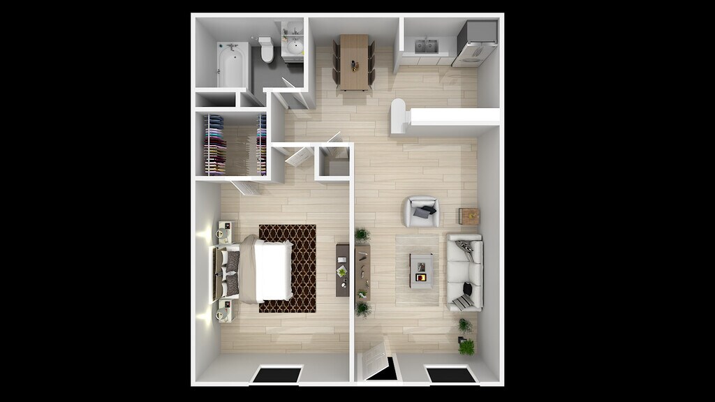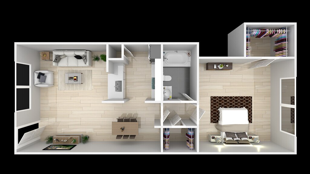 1 Bed, 1 Bath, 672 sq ftModel Gallery