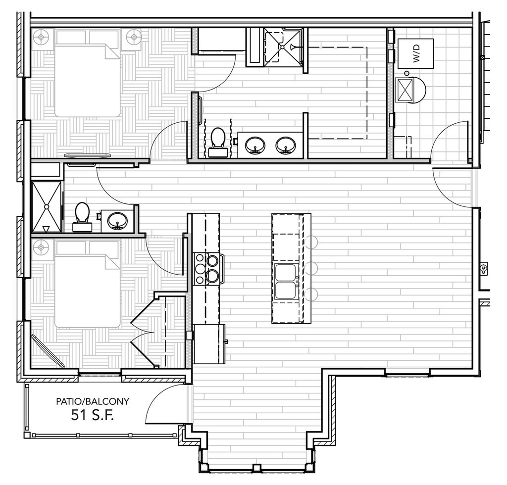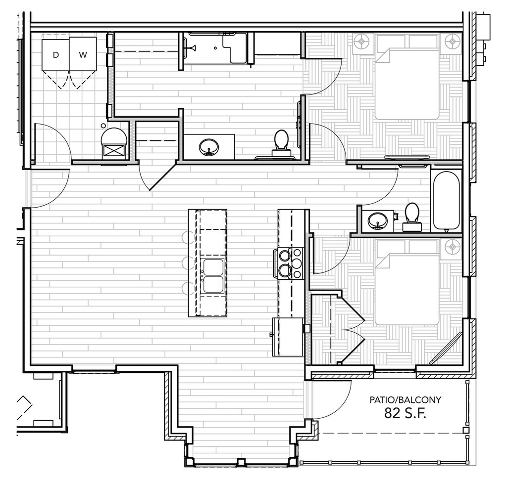 The Kirk - Floorplan 1 Apartment Unit: South Building-203Apartment Model: The Kirk2 Bedroom, 2 Bath, 946 sq ftAvailable May 7, 2026The Maren