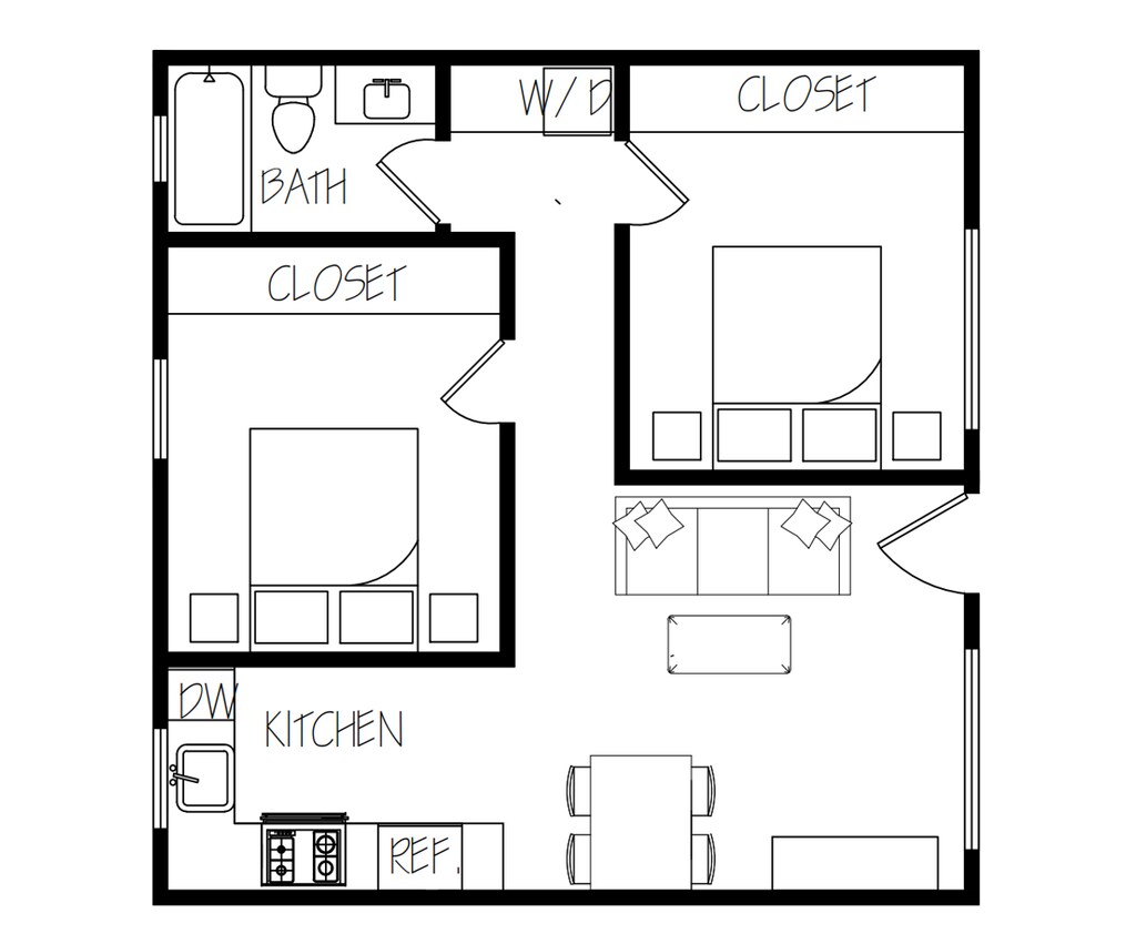 2 Beds, 2 Baths, 609-631 sq ftAvailable NowAvailability Details