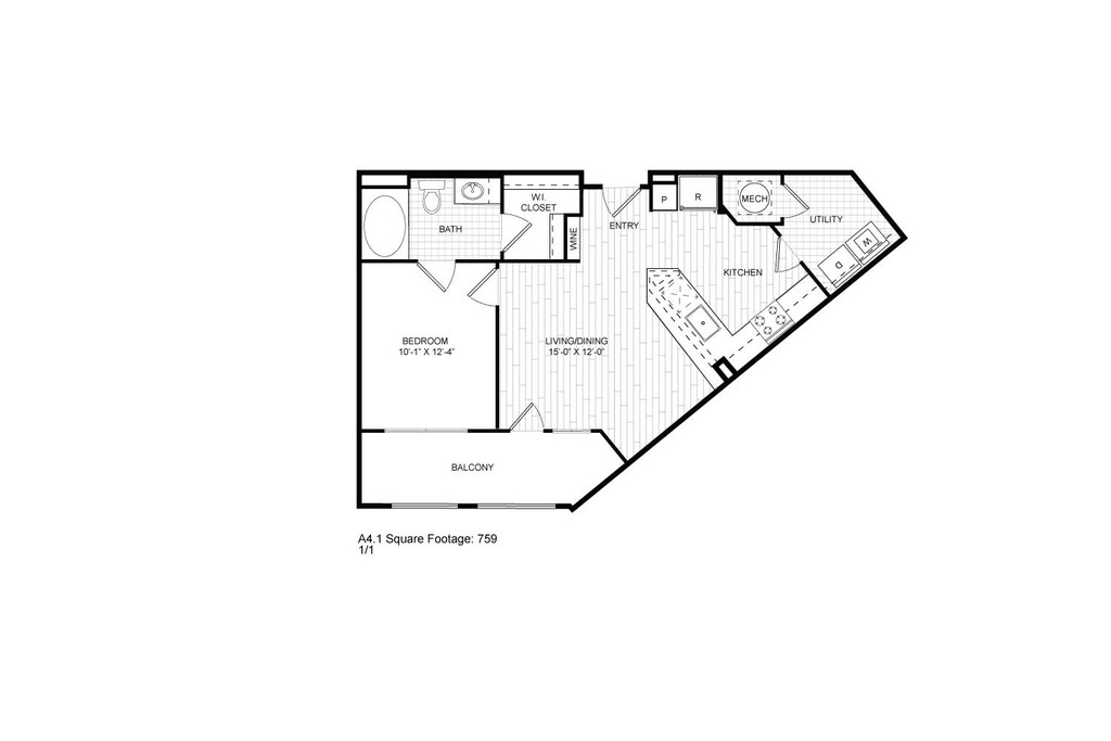 S1A - Floorplan 1 Apartment Unit: 5019Apartment Model: S1A$2,225Studio, 1 Bath, 612 sq ftAvailable Now1 Bedroom