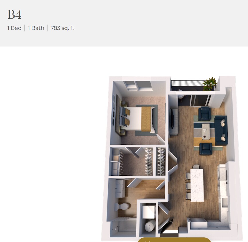 Apartment Model: B7-DenFrom $3,0961 Bedroom, 1 Bath, 935 sq ftAvailable December 2, 2025Floor plans are artist's rendering. All dimensions are approximate. Actual product and specifications may vary in dimension or detail. Not all features are available in every rental home. Prices and availability are subject to change. Base rent is based on monthly frequency. Additional fees may apply, such as but not limited to package delivery, trash, water, amenities, etc. Deposits vary. Please see a representative for details.