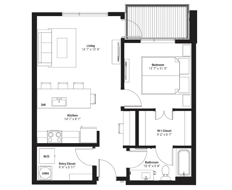 Studio, 1 Bath, 606 sq ftLargest StudioThis is the largest Studio at this PropertyModel Gallery