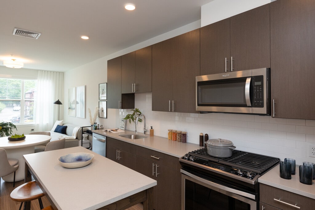 At The James Park Ridge apartments, residents enjoy an exceptional living experience with thoughtfully designed community amenities in a prime location near a variety of shopping and dining. Upscale atmosphere melds with small-town charm when you choose The James Park Ridge pet friendly apartments. You will discover neighborhood treasures such as historic Wortendyke Barn and an active 1872 Park Ridge train station along with parks and trails such as Kayma Park and Memorial Field. Our studio, one and two bedroom apartments for rent in Park Ridge, NJ boast modern features such as quartz counters and Energy Star stainless steel appliances. Our premium amenity suite includes a plunge pool, a high-impact fitness center with Precor gym equipment, fireside outdoor seating with TVs, and complimentary bike storage. Contact us today to reserve your luxury apartment for rent at The James Park Ridge!
