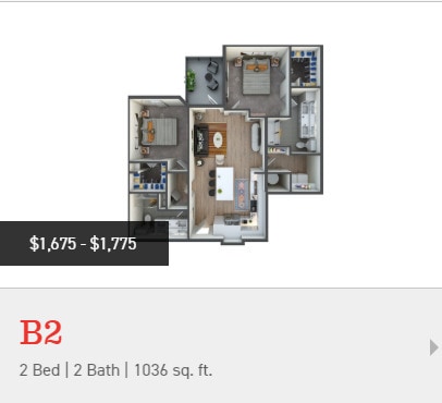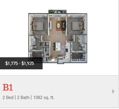 Price Availability Date Unit Sq Ft View Details $1,110 November 14, 2025 1221 495 $1,110 November 28, 2025 7207 495 $1,082 December 31, 2025 7310 495 Model Amenities and Features