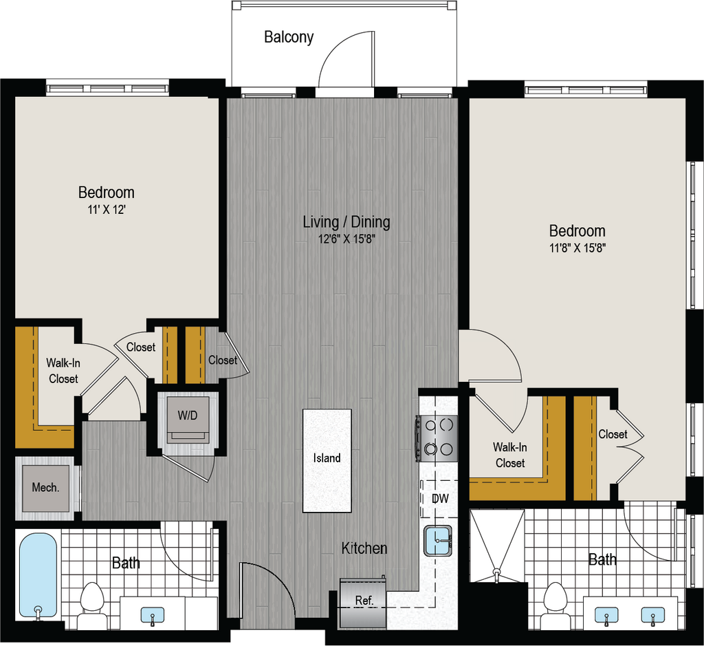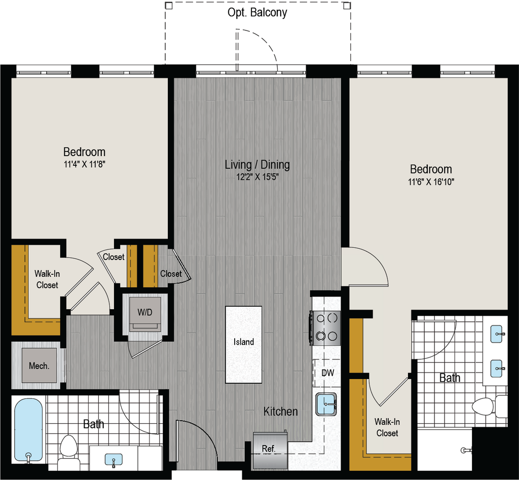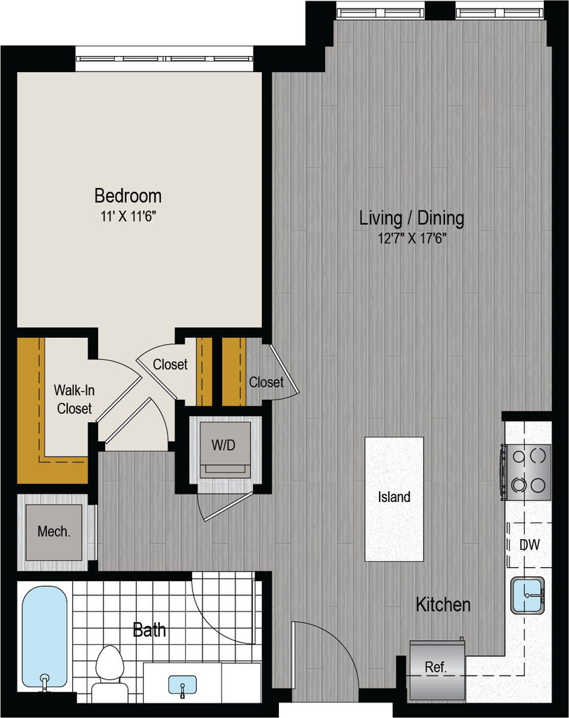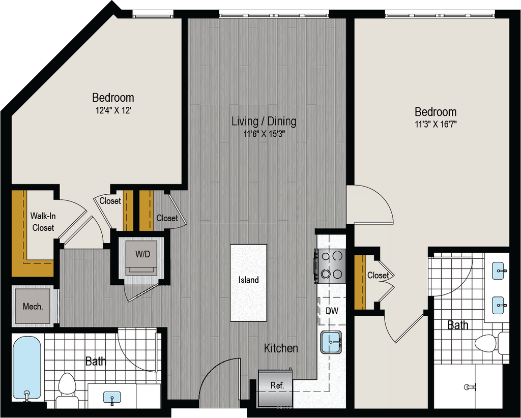 1 Bed, 1 Bath, 702 sq ftAvailable NowLargest 1 BedroomThis is the largest 1 Bedroom at this PropertyModel Gallery