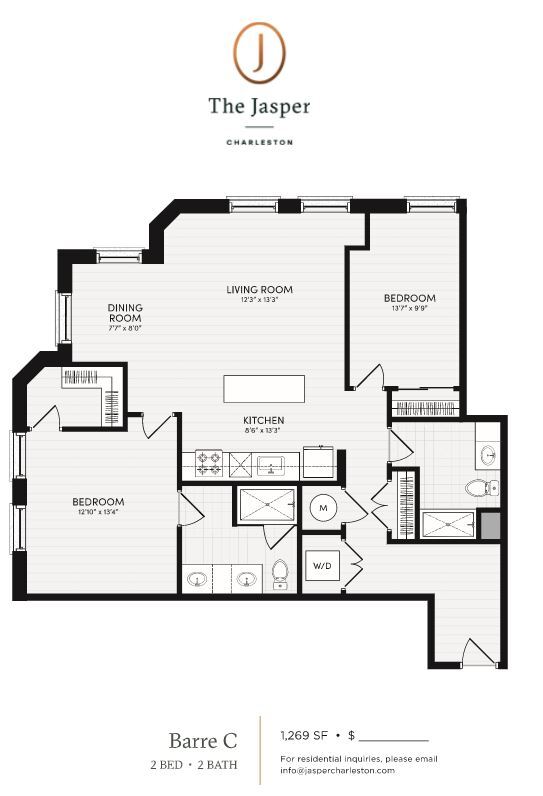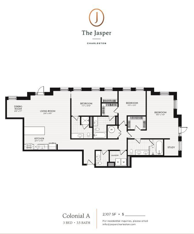 The Jasper offers Studio to 3 Bedroom apartments starting from $2,320 and having 525–2,230 sq ft. Here is the current pricing and availability:
