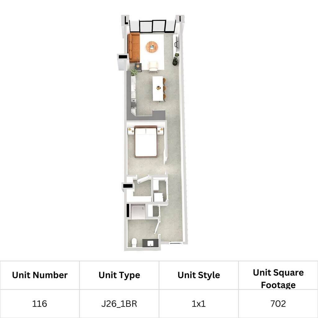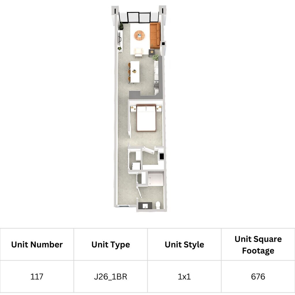 J26 1 Bed, 1 Bath - Floorplan 7 Apartment Unit: 117Apartment Model: J26 1 Bed, 1 Bath$2,2101 Bedroom, 1 Bath, 676 sq ftAvailable December 1, 2025J27 1 Bed, 1 Bath