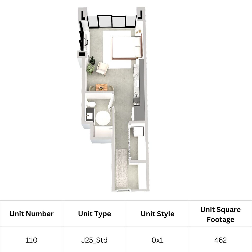 J25 Studio - Floorplan 1 Apartment Unit: 110Apartment Model: J25 Studio$1,816Studio, 1 Bath, 462 sq ftAvailable December 1, 2025J2 Studio
