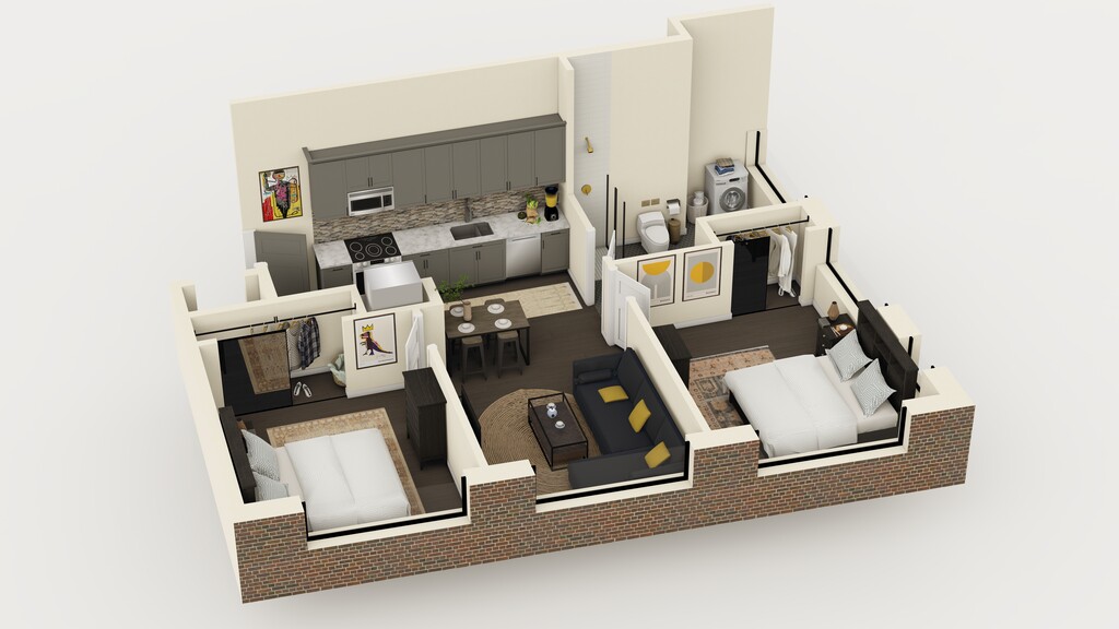 2 Beds, 2 Baths, 654 sq ftModel Gallery
