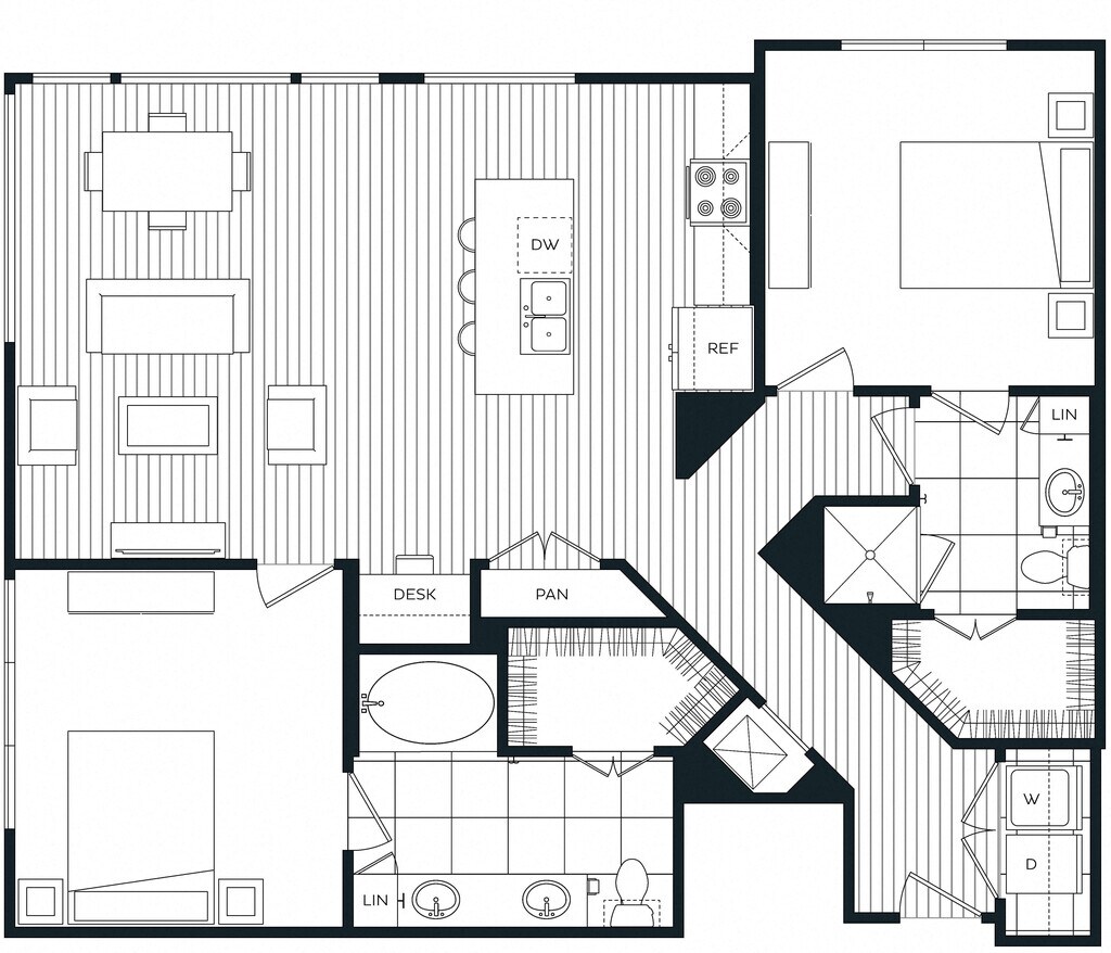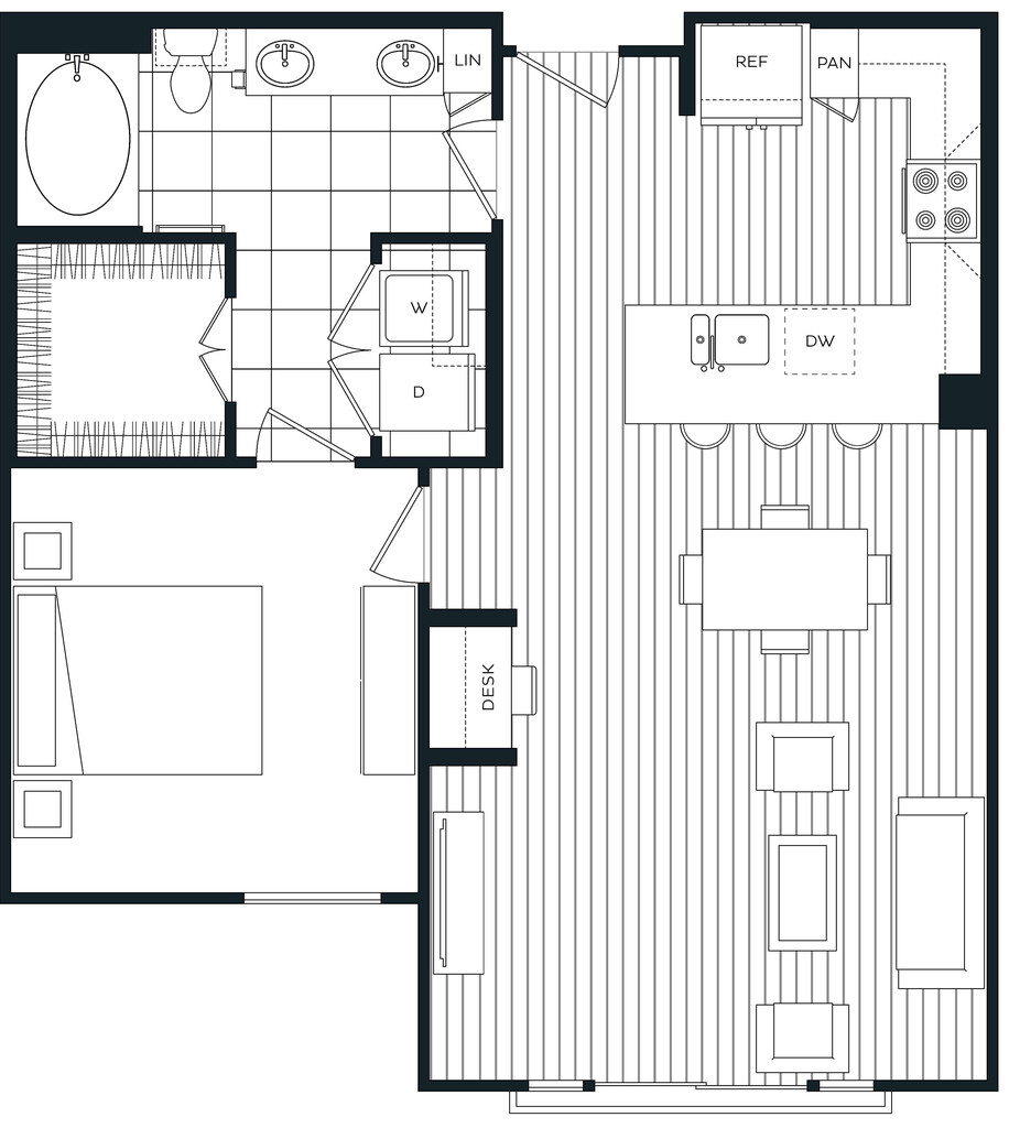 Apartment Model: 1 Bed/1 Bath-CFrom $2,3901 Bedroom, 1 Bath, 794-795 sq ftAvailable Now![]()
