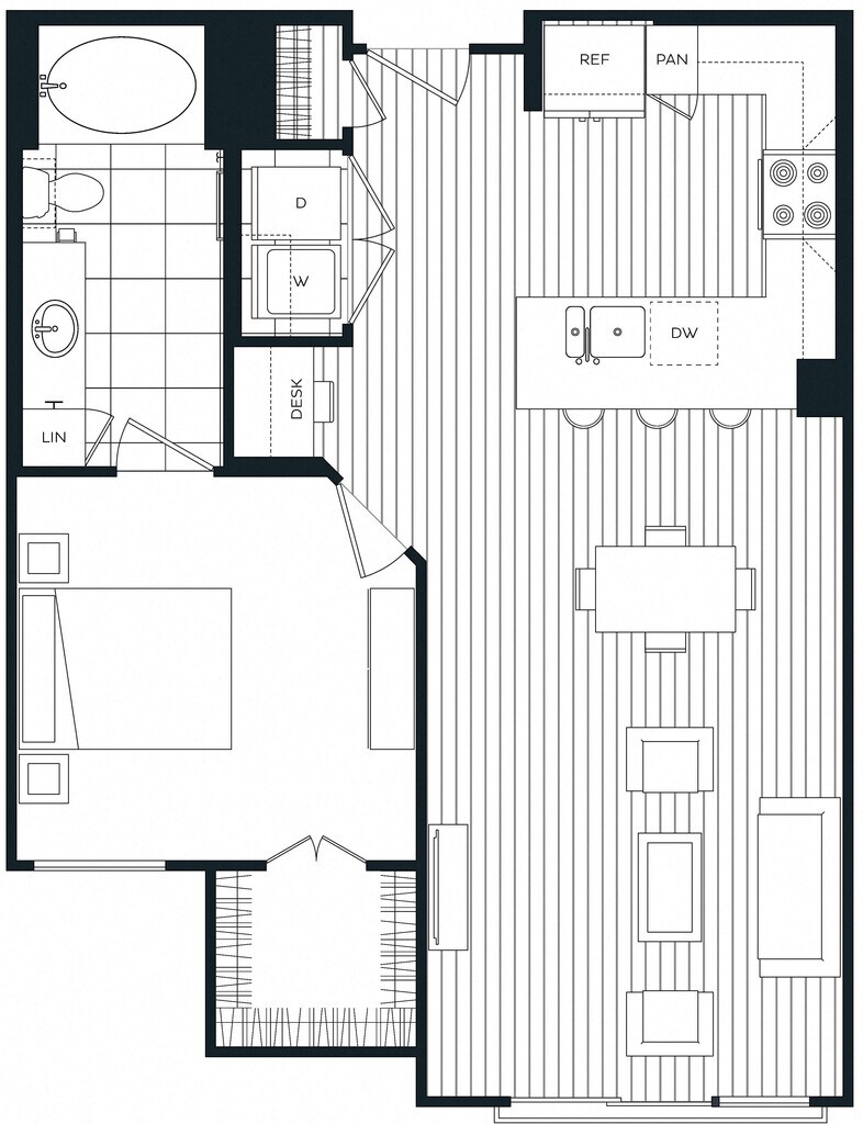 Studio, 1 Bath, 544-548 sq ftAvailable NowModel Gallery