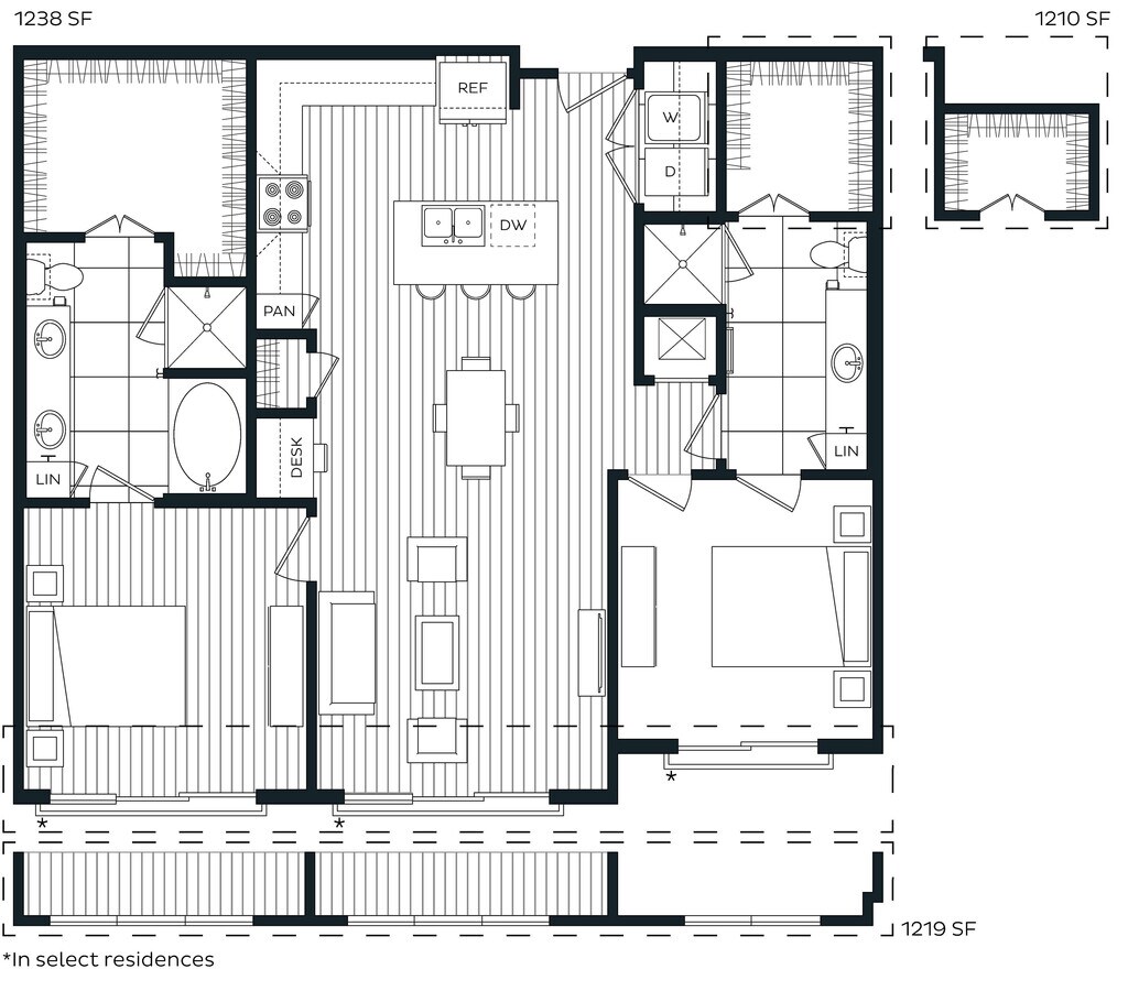 1 Bed, 1 Bath, 748-788 sq ftAvailable NowModel Gallery