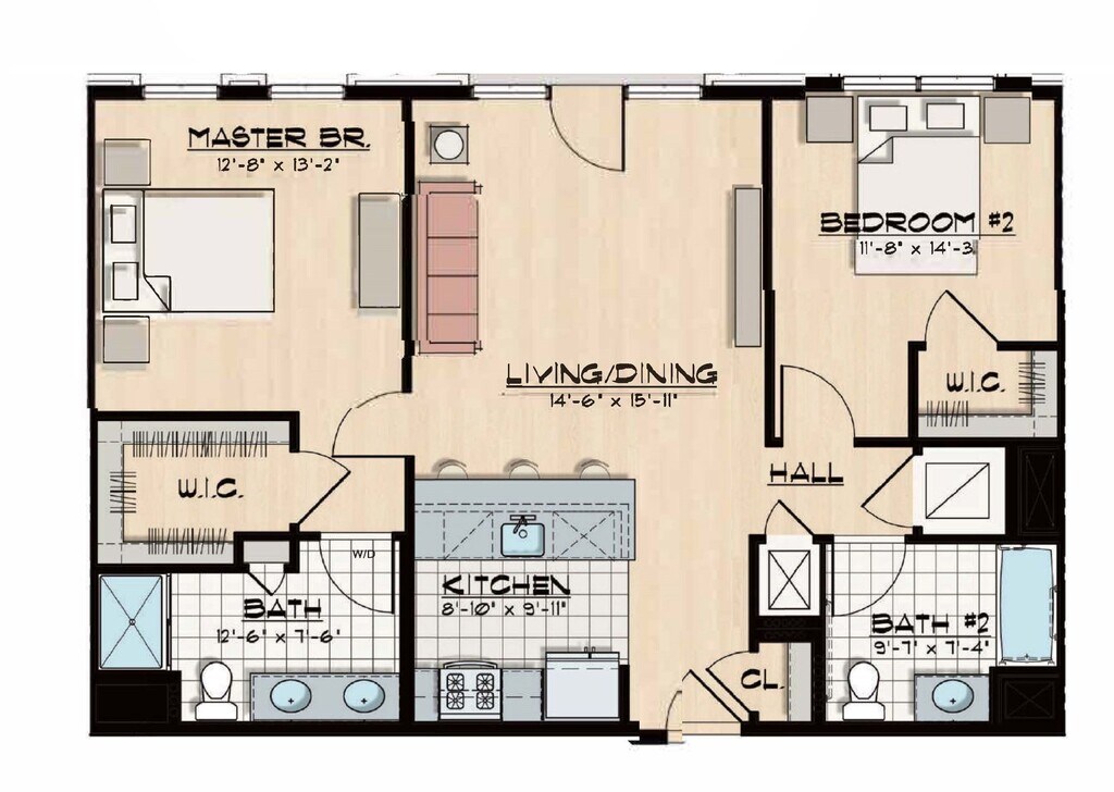 Apartment Model: B8$5,2822 Bedroom, 2 Bath, 1100 sq ftAvailable January 9, 2026![]()