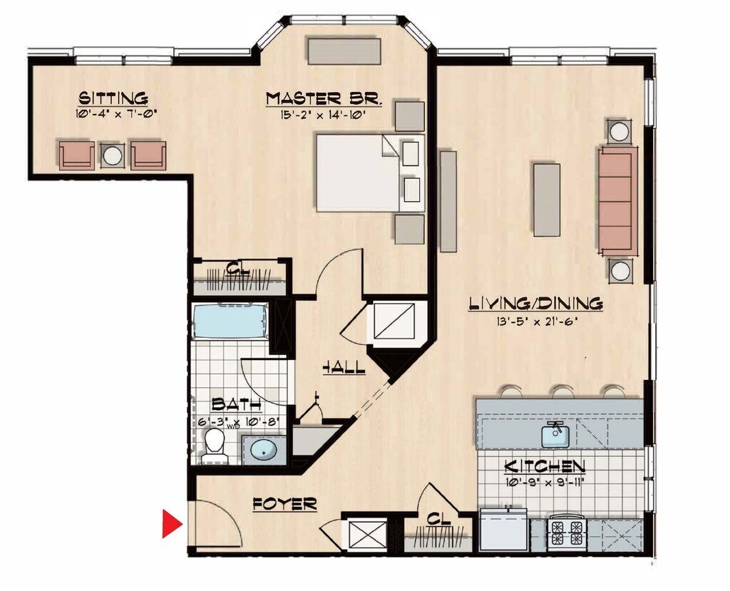 1 Bed, 1 Bath, 1078 sq ftLargest 1 BedroomThis is the largest 1 Bedroom at this PropertyModel Gallery