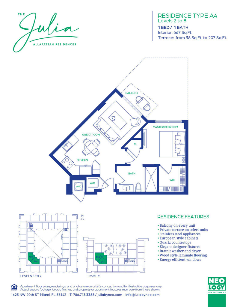This iconic project is strategically located in the heart of Allapattah, and central to everything Miami has to offer, boasting premium amenities and spacious one- and two- bedroom residences, making it an ideal location for those who want to live and immerse themselves in the city’s dynamic and vibrant culture.What truly sets The Julia apart is its distinctive aesthetic, a perfect blend of modern design and elegance, transforming every corner into a masterpiece. The synergy between private sanctuaries and bustling communal spaces introduces a new way of life, where convenience and sophistication coexist seamlessly.From the moment you enter the lobby to relaxing in your impeccably designed residence, you'll encounter an unmatched level of refinement. Living at The Julia is about embracing a lifestyle that is uniquely sophisticated and effortlessly exceptional, perfectly encapsulating the essence of Miami's evolving urban landscape.