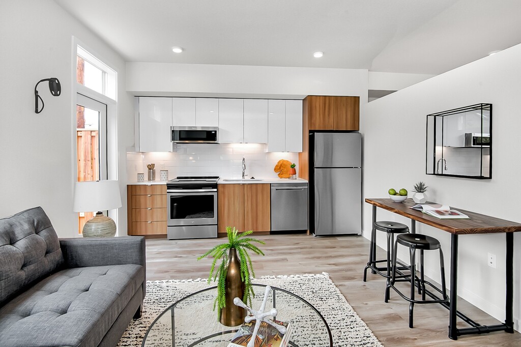 The Julian homes have a refined modern design, open concept, plenty of natural light, and bike racks! The property is within a 5-minute walk from the MAX Blue Line, the MAX Green Line, and the MAX Red Line at the NE 60th Ave MAX Station stop. The fantastic location is bordered by Laurelhurst and Mt. Tabor neighborhood and nearby parks include Erv Lind Stadium, Rosemont Bluff Natural Area, and Normandale Park. nearby coffee shops and a wide range of restaurants will give you ample reasons to explore your new neighborhood! Walk Score: 82 Very Walkable Bike Score:92 Bikers Paradise Photos used in the advertisement may not be photos of the specific unit that is available and may have variations in amenities, condition, and floorplan. Apartment Features: Backyards or decks selected units Gated Community with Private/Separate Entrances Open-air common space Large windows for natural light High-efficiency electric heat Fully Equipped Kitchen Washer/Dryer Hard Surface Flooring