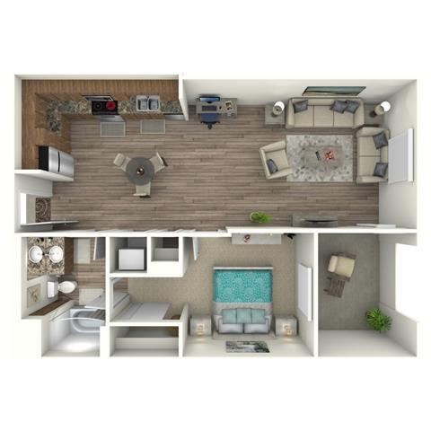 1 Bed, 1 Bath, 703 sq ftModel Gallery