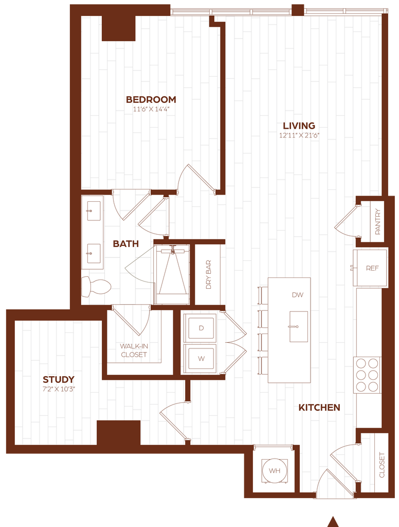 Studio, 1 Bath, 570 sq ftAvailable NowModel Gallery