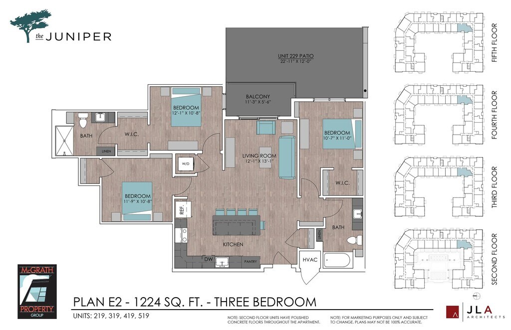 The Juniper offers 1 to 3 Bedroom apartments starting from $1,485 and having 534–1,224 sq ft. Here is the current pricing and availability: