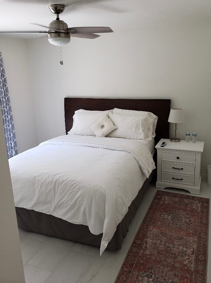 Shared furnished unit offering private bedroom and shared bathroom. Recently refurbished, fully furnished and supplied with all linens, kitchenware and the comforts of home. Large closet space. Ample street parking is available.