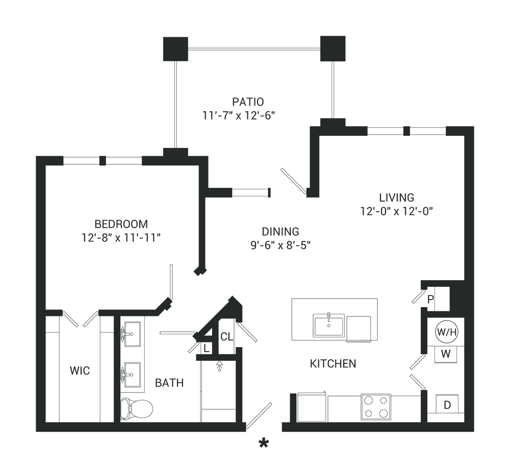 Apartment Model: LilacCall For RatesStudio, 1 Bath, 523 sq ftUnavailableLilac - Floorplan 1 1 Bedroom