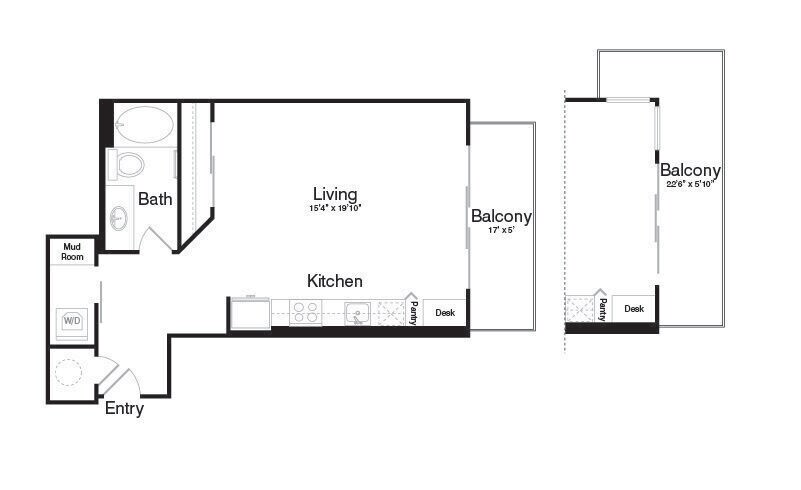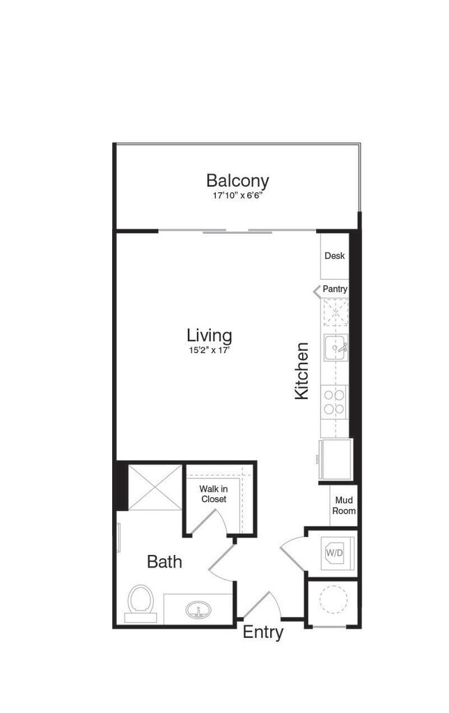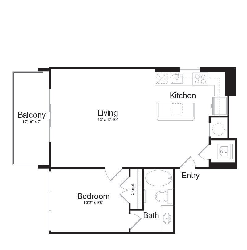 Studio, 1 Bath, 645 sq ftAvailable January 17, 2026Largest StudioThis is the largest Studio at this PropertyModel Gallery