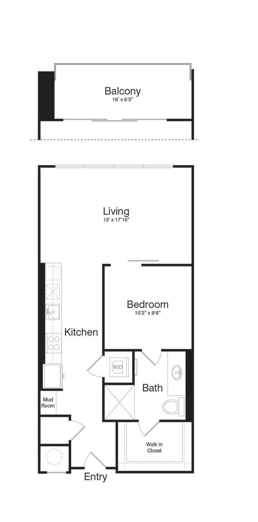 E1 - Floorplan 1 Apartment Unit: 616Apartment Model: E1Studio, 1 Bath, 495 sq ftAvailable NowFloorplan E2a