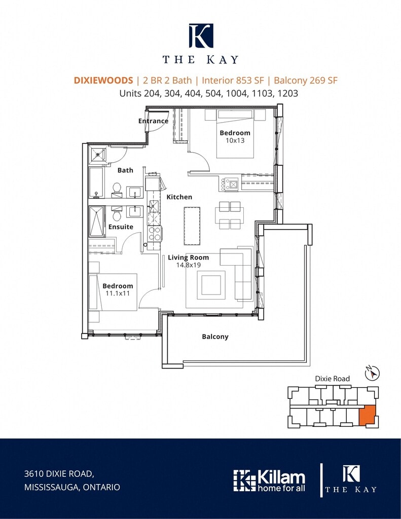 The Kay is located at 3610 Dixie Rd near the Mississauga Centre Streetsville area of Mississauga, ON
