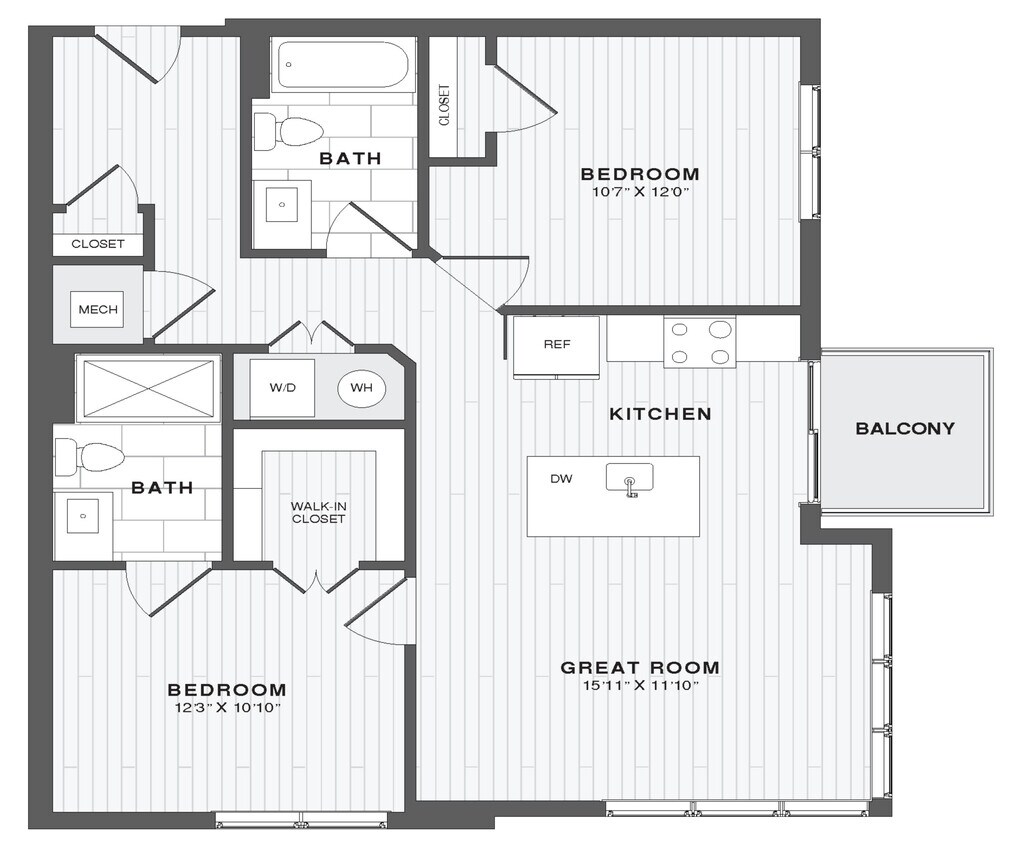 Apartment Model: 2 Bed/2 Bath-B1From $2,6382 Bedroom, 2 Bath, 954 sq ftAvailable Now![]()