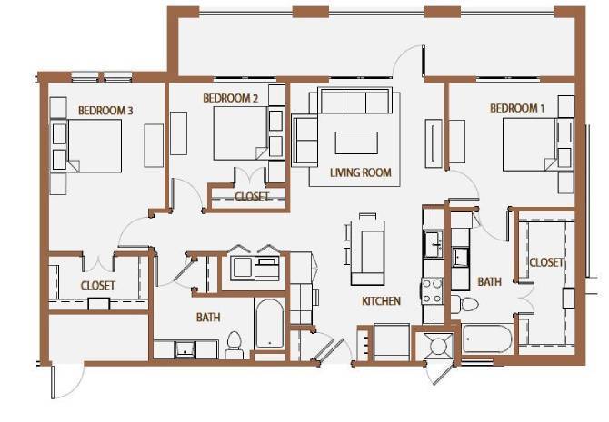 Studio, 1 Bath, 684 sq ftAvailable January 2, 2026Largest StudioThis is the largest Studio at this PropertyModel Gallery
