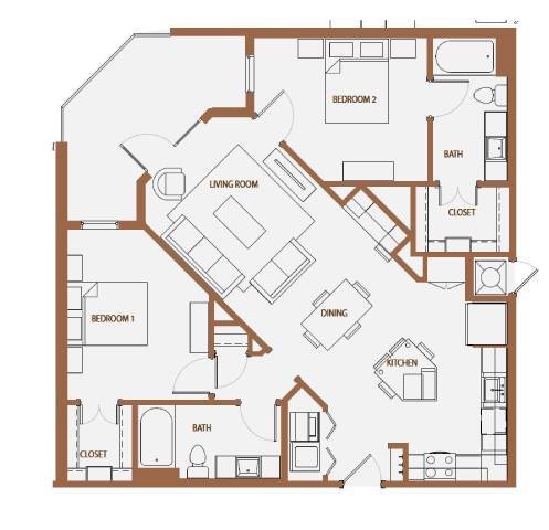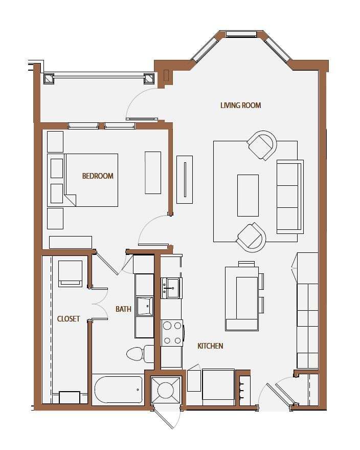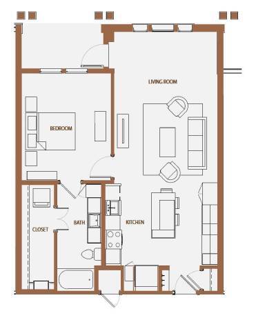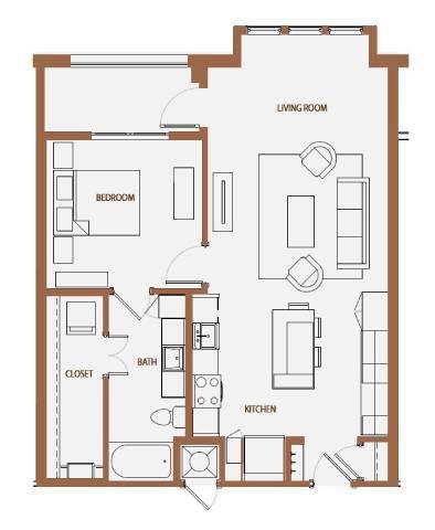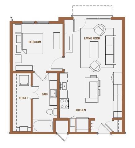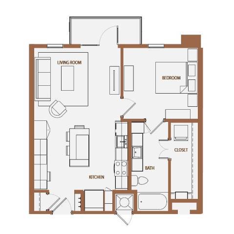 Studio, 1 Bath, 638 sq ftAvailable NowModel Gallery