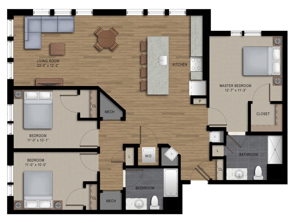 The Kendrick offers Studio to 3 Bedroom apartments starting from $2,630 and having 541–1,485 sq ft. Here is the current pricing and availability: