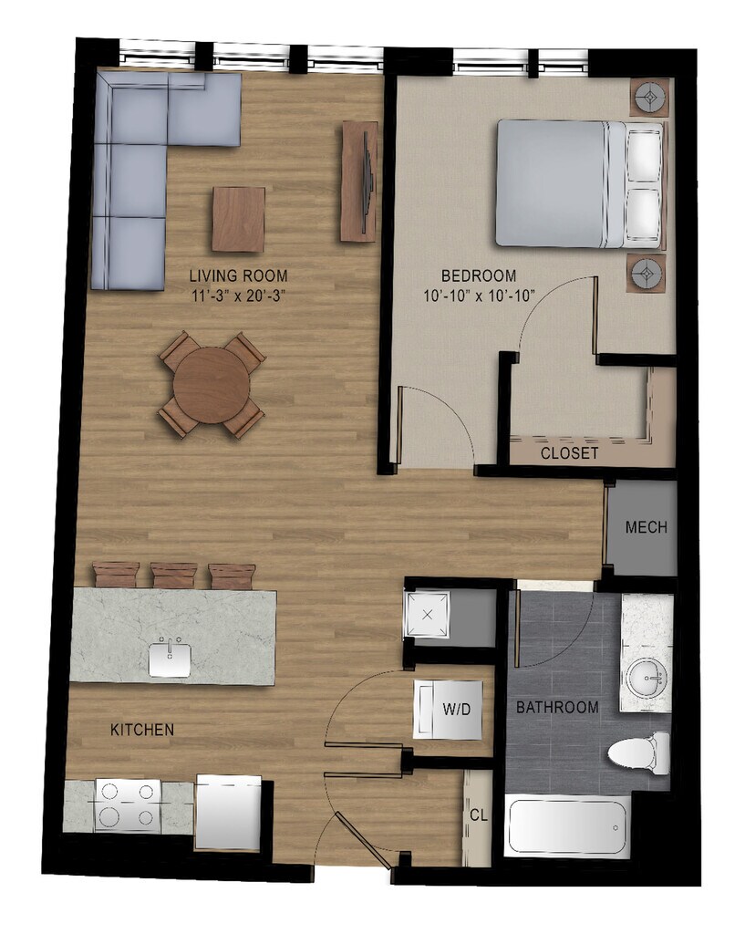 Studio, 1 Bath, 541 sq ftPlus FeesAvailable NowModel Gallery